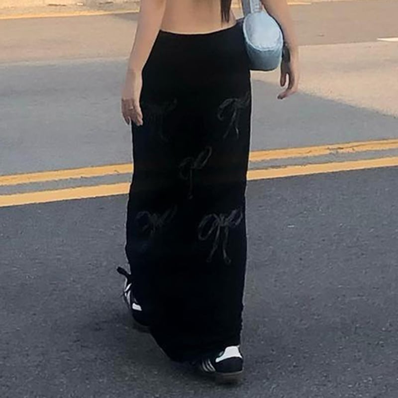 Cute Black Sexy Cut Out Pant Slim Sweat Hallow Out Flare Trousers Bell Bottoms E-Girl Kawaii Korean Japanese Harajuku Retro Streetwear