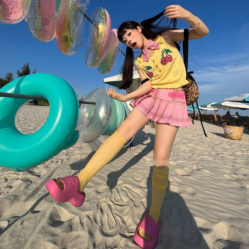 Cute Vintage Red Flower High Waist Print Beach Long Skirt Wrap Sexy Aesthetic Casual Summer E-Girl Kawaii Korean Japanese Harajuku