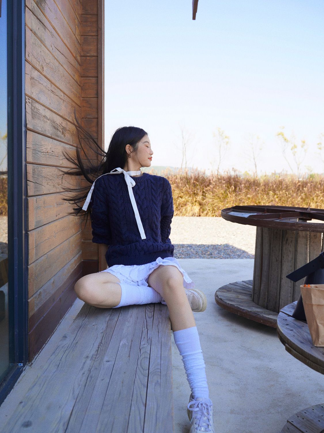 Pink Bow Stripe Fold Lace Up High Waist Skirt