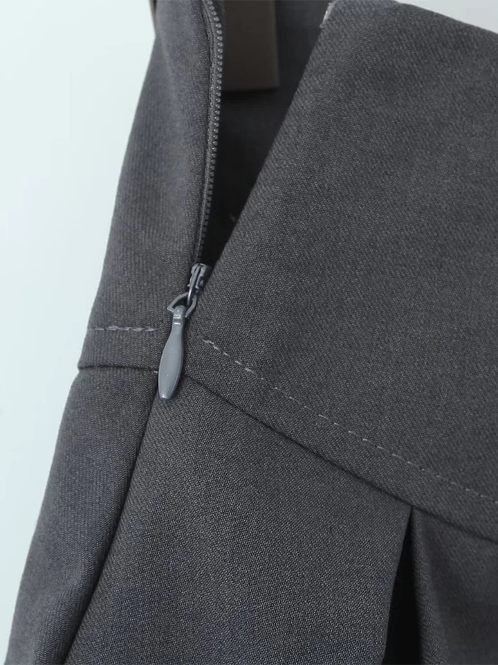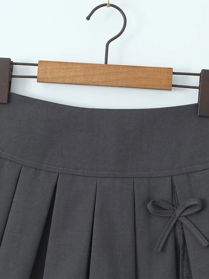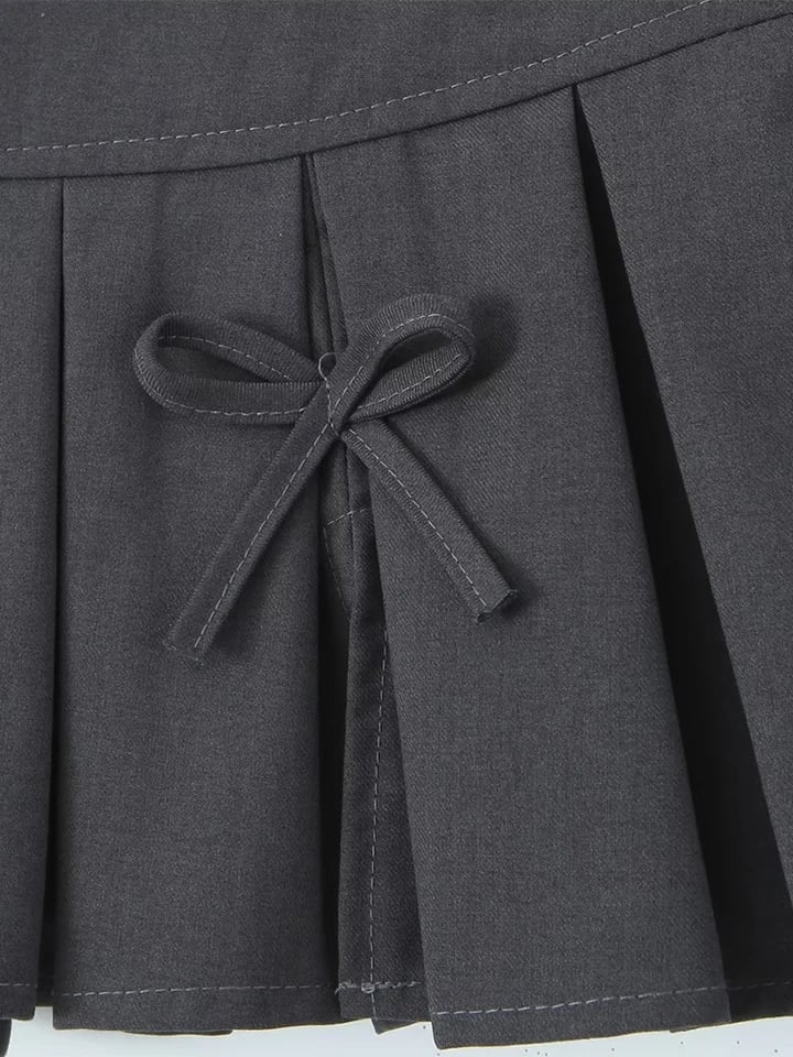 Grey Bow Low Waist Tiered Pleated Skirt