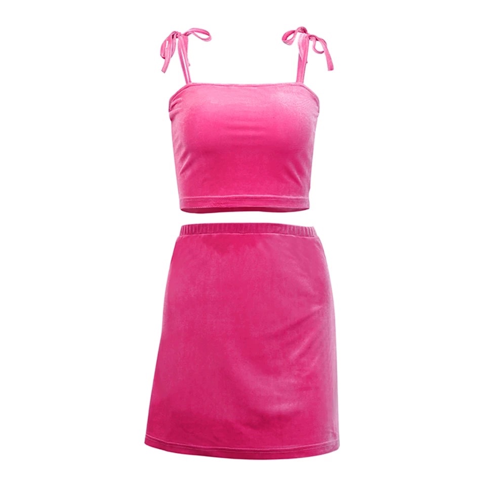 2pcs Set Velvet Crop Top Summer Tube Top Neon Split Mini Skirt Club Party Dress E-Girl Kawaii Korean Japanese Harajuku Retro Streetwear Aesthetic
