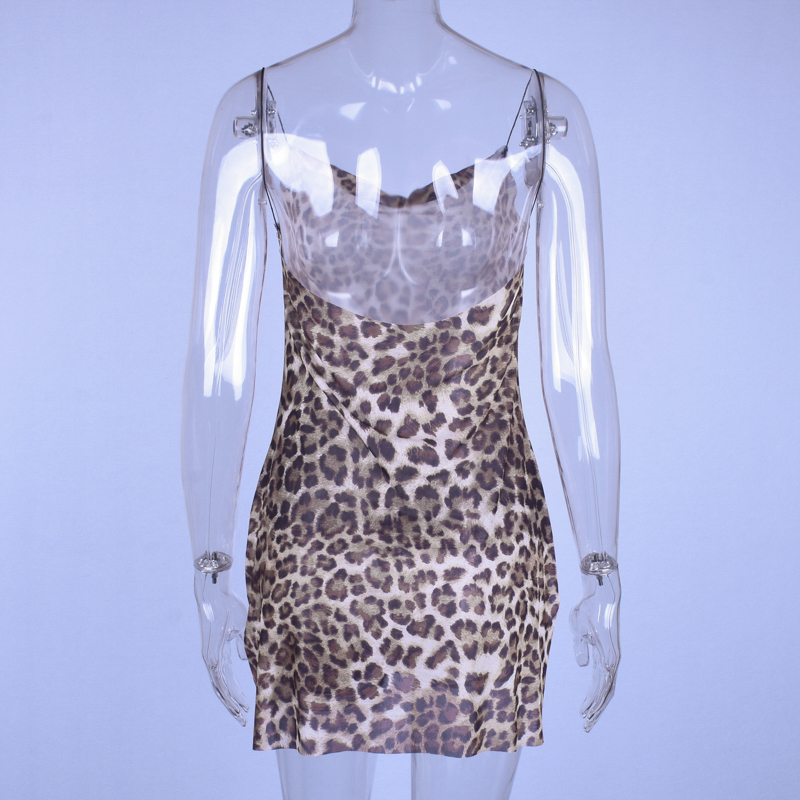 Leopard Print Spaghetti Strap Slit Mesh Mini Dress Summee Party Club E-Girl Kawaii Korean Japanese Harajuku Streetwear