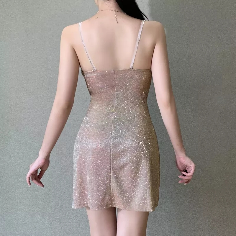 Cute Sexy Sparkle Rhinestone Mini Dress Low Neck Sleeveless Backless Night Club Bodycon Summer Aesthetic Casual E-Girl Kawaii Korean Japanese Harajuku