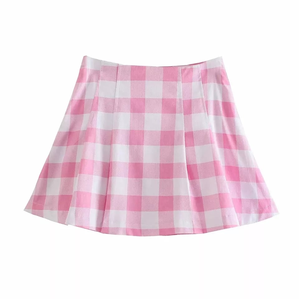 Cute 2pcs Set Vinatge Pink Plaid Blazer + High Waist Mini Skirt Suit Summer Aesthetic Casual E-Girl Kawaii Korean Japanese Harajuku