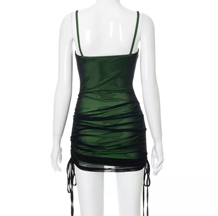 Cute Sexy Green Black Mesh Patchwork Bodycon Lace Up Mini Dress Summer Aesthetic Casual E-Girl Kawaii Korean Japanese Harajuku