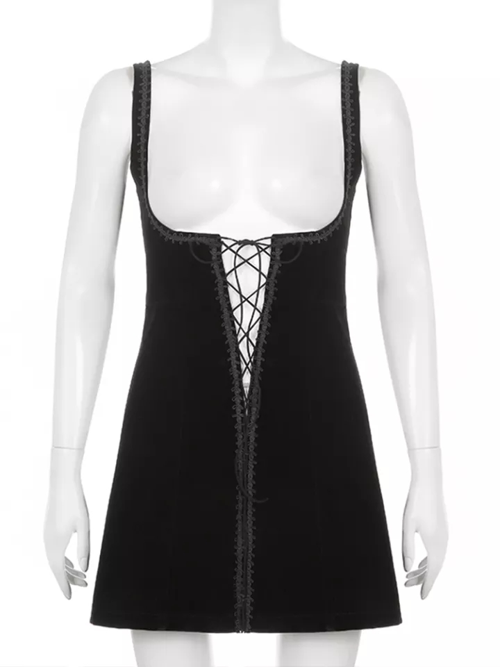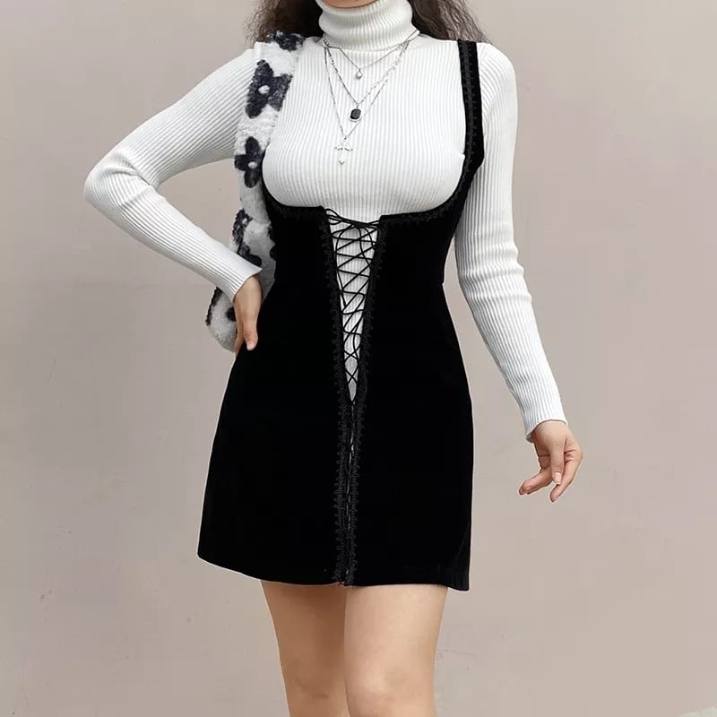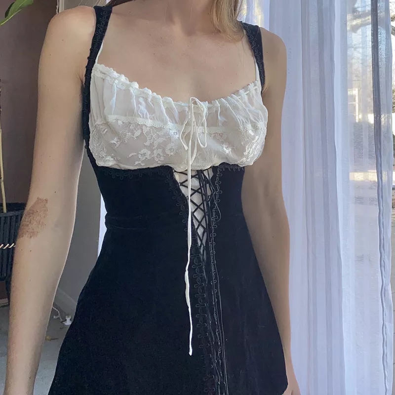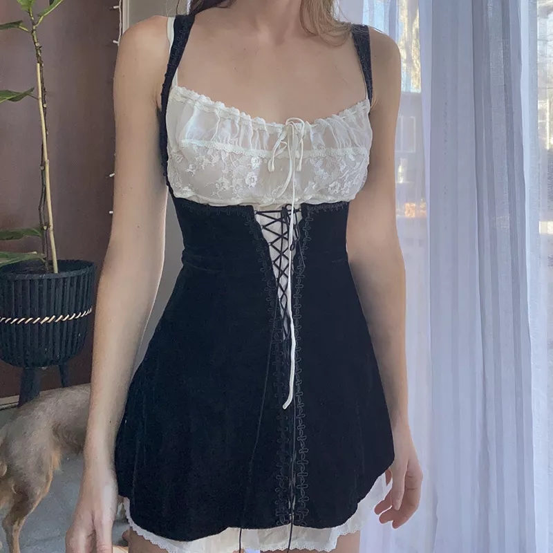 Sweet Velvet Corset Tie Up Mini Dress Summer Aesthetic Casual E-Girl Kawaii Korean Japanese Harajuku