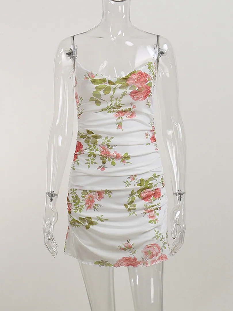 2PCS Pink Side Cross Strapless Top + Pleated Mini Skirt