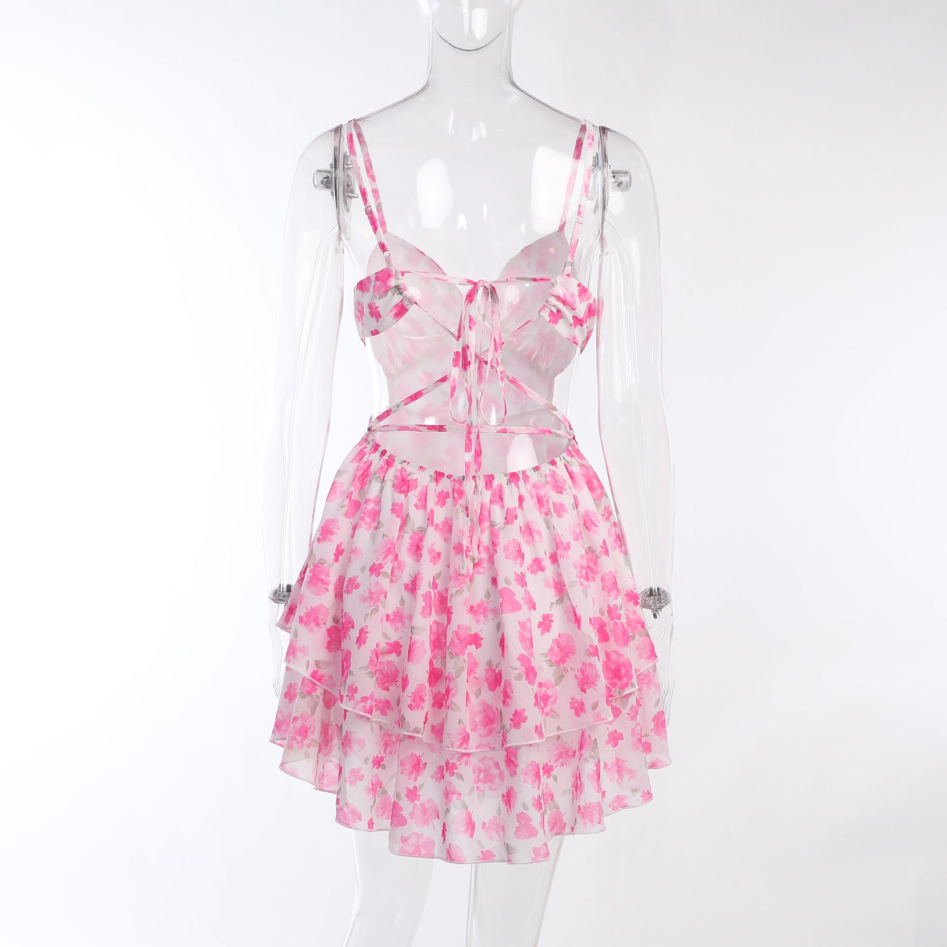 Pink Floral V Neck Mini Dress