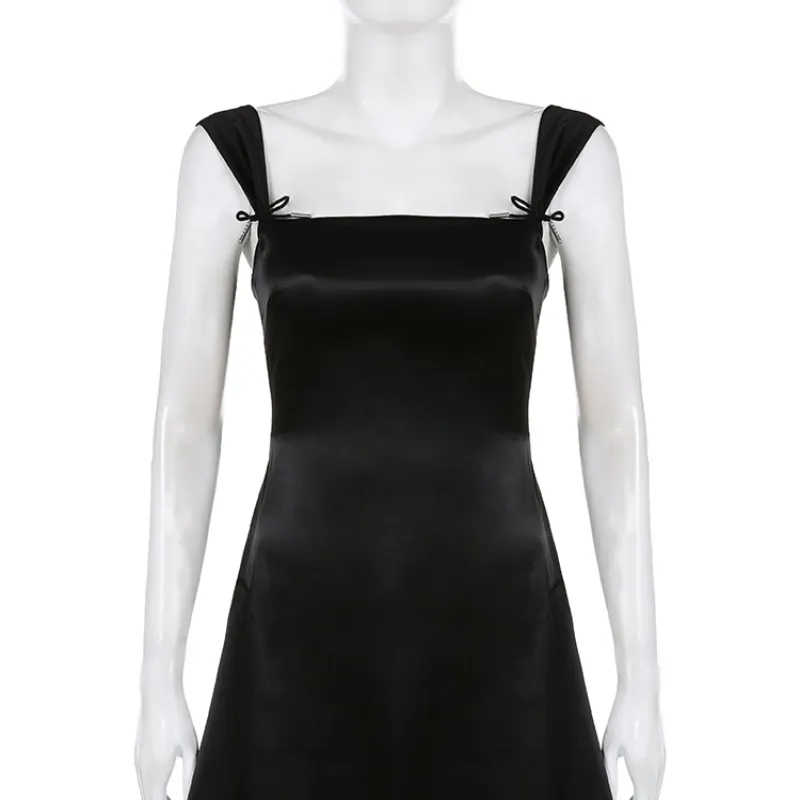 2PCS Black Patchwork Bow Tank Top + Pleated Mini Skirt