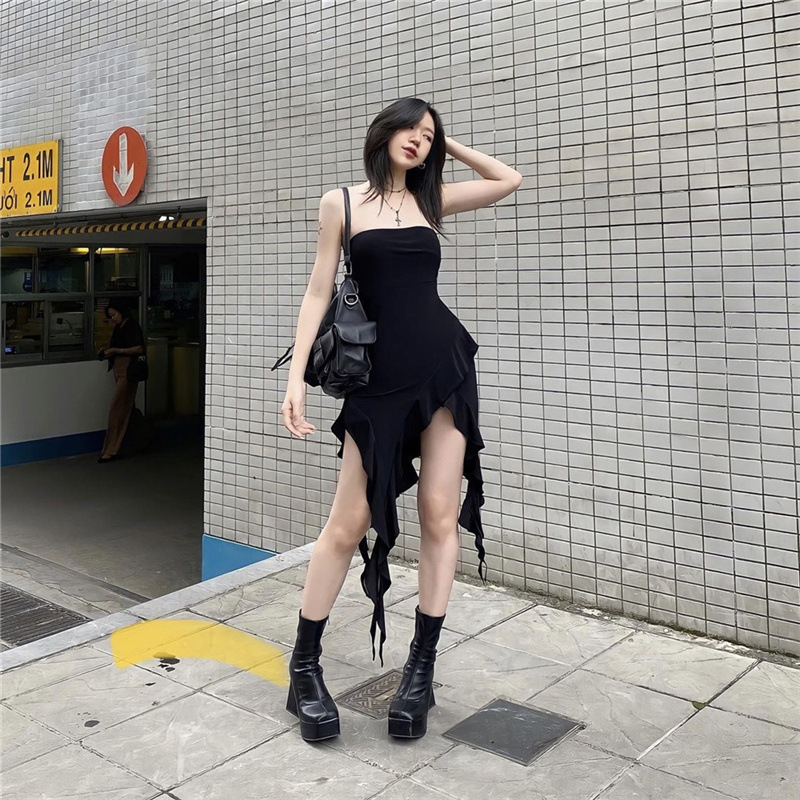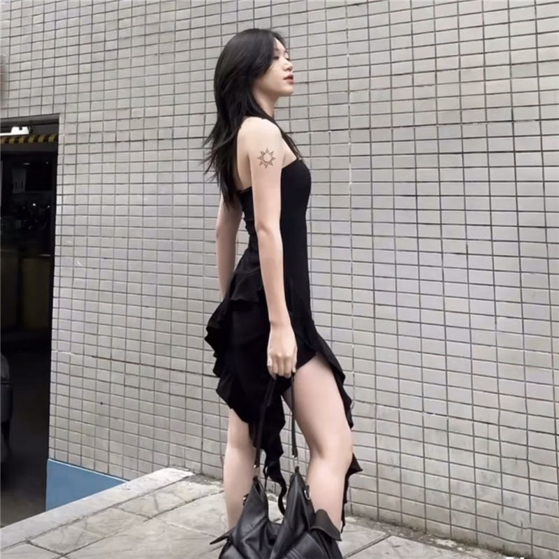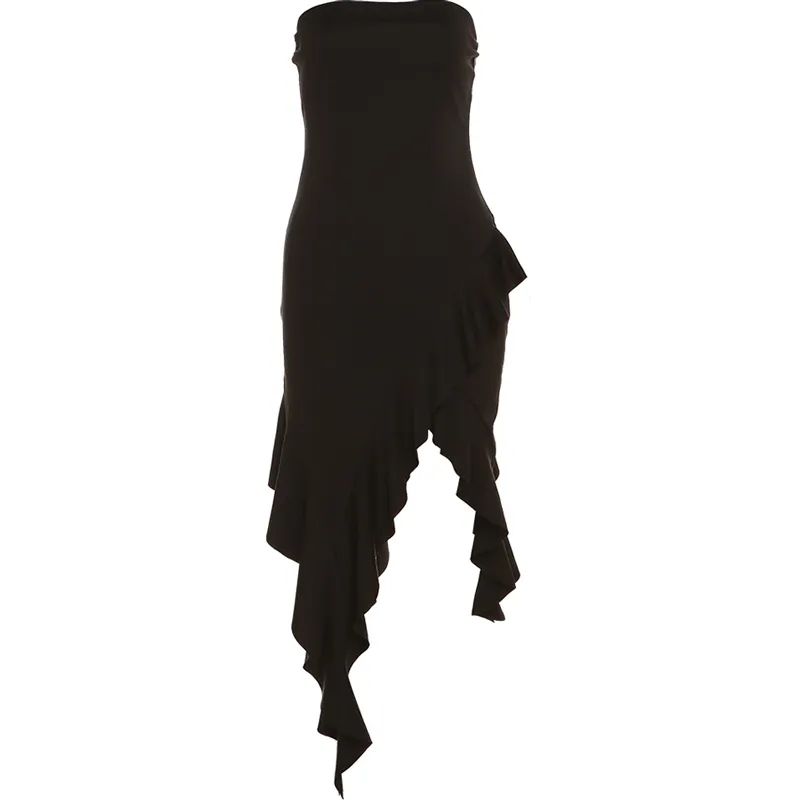 Pink Sequin Ruffle Asymmetrical Mini Dress