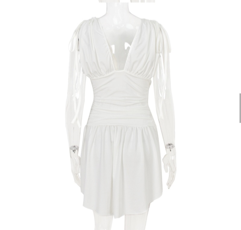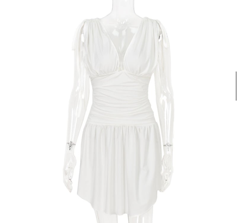 Irregular Tie Up Ruched V Neck Dress