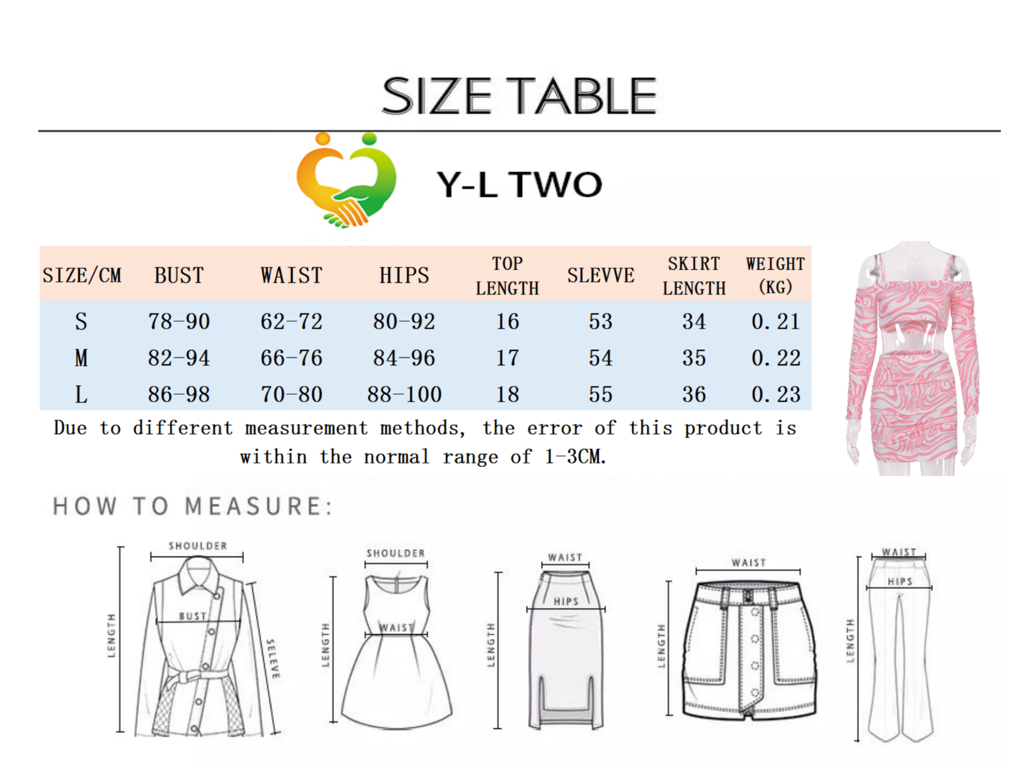 2PCS Pink Off Shoulder Sling Long Sleeve Crop Top + Skirt