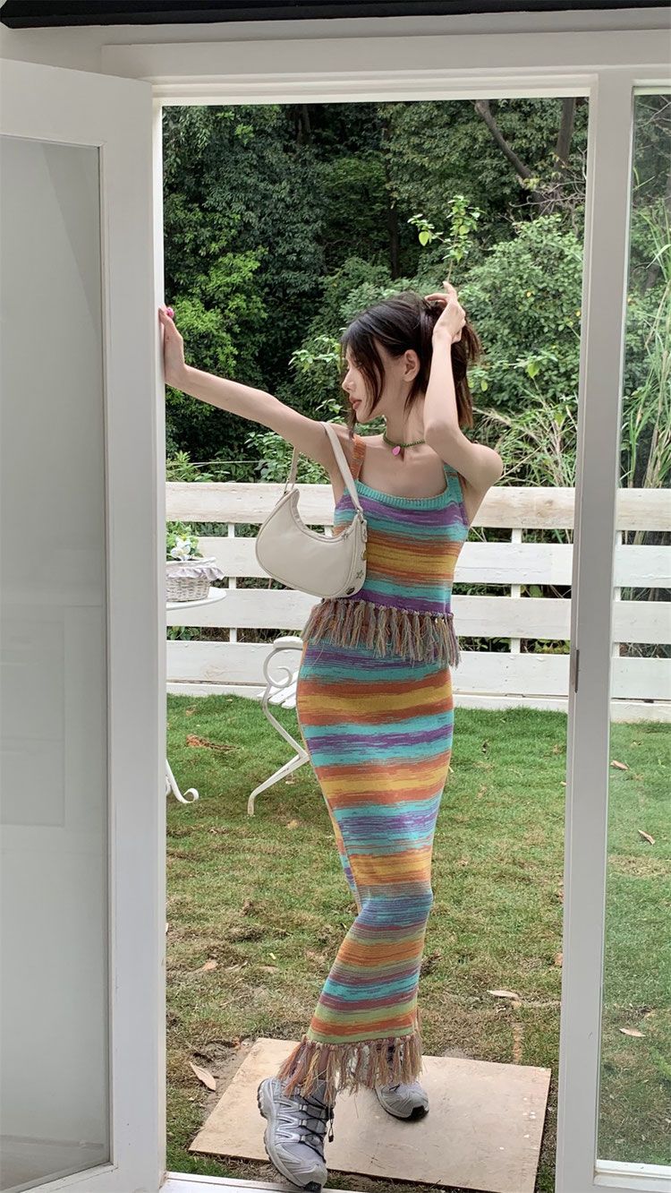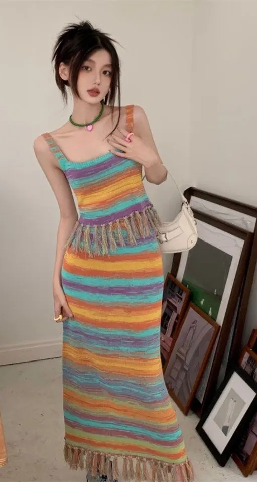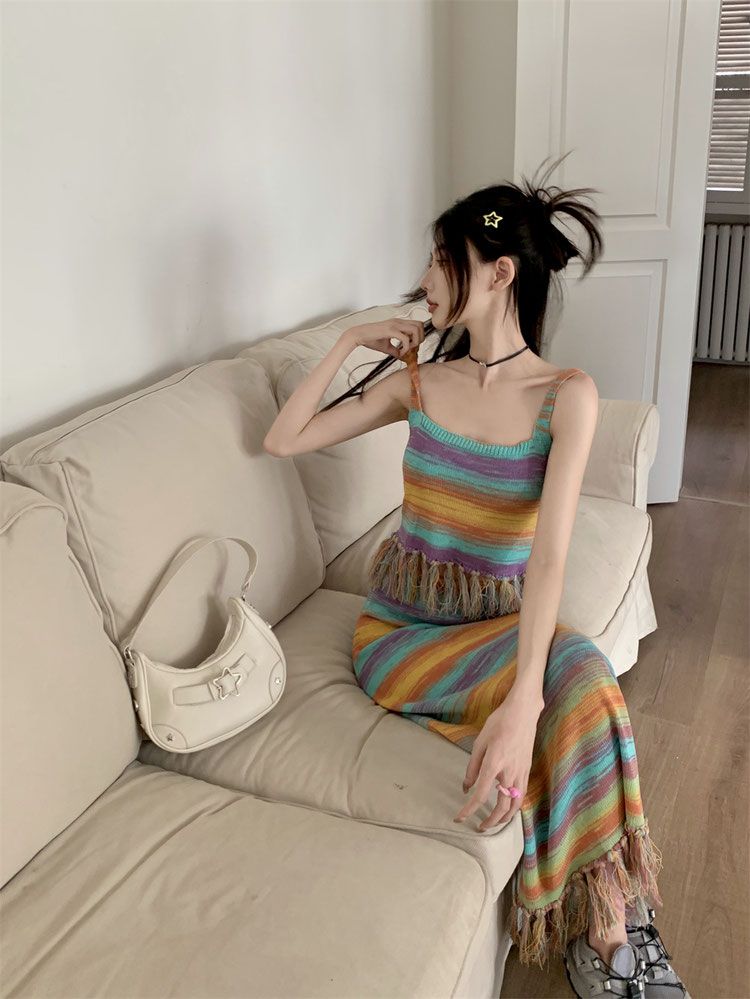 Rainbow Stripe Tassel Tank Top + Maxi Skirt