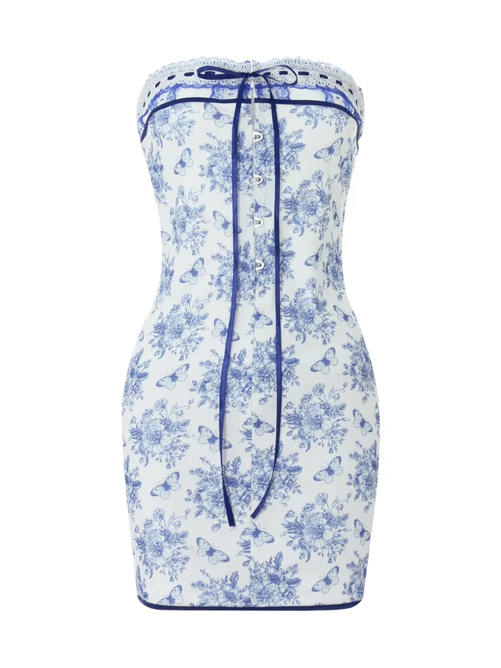 Cute Vintage Straped Mini Dress Bandage Ruffle Puff Elegant E-Girl Kawaii Korean Japanese Harajuku Chinese Retro Streetwear Aesthetic