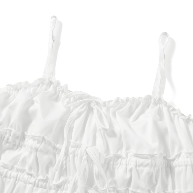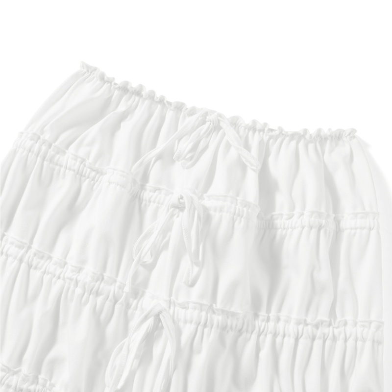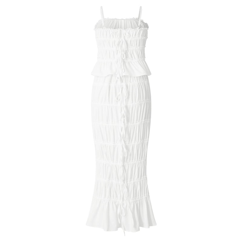 2PCS White Ruffle Camisole + High Waist Long Skirt
