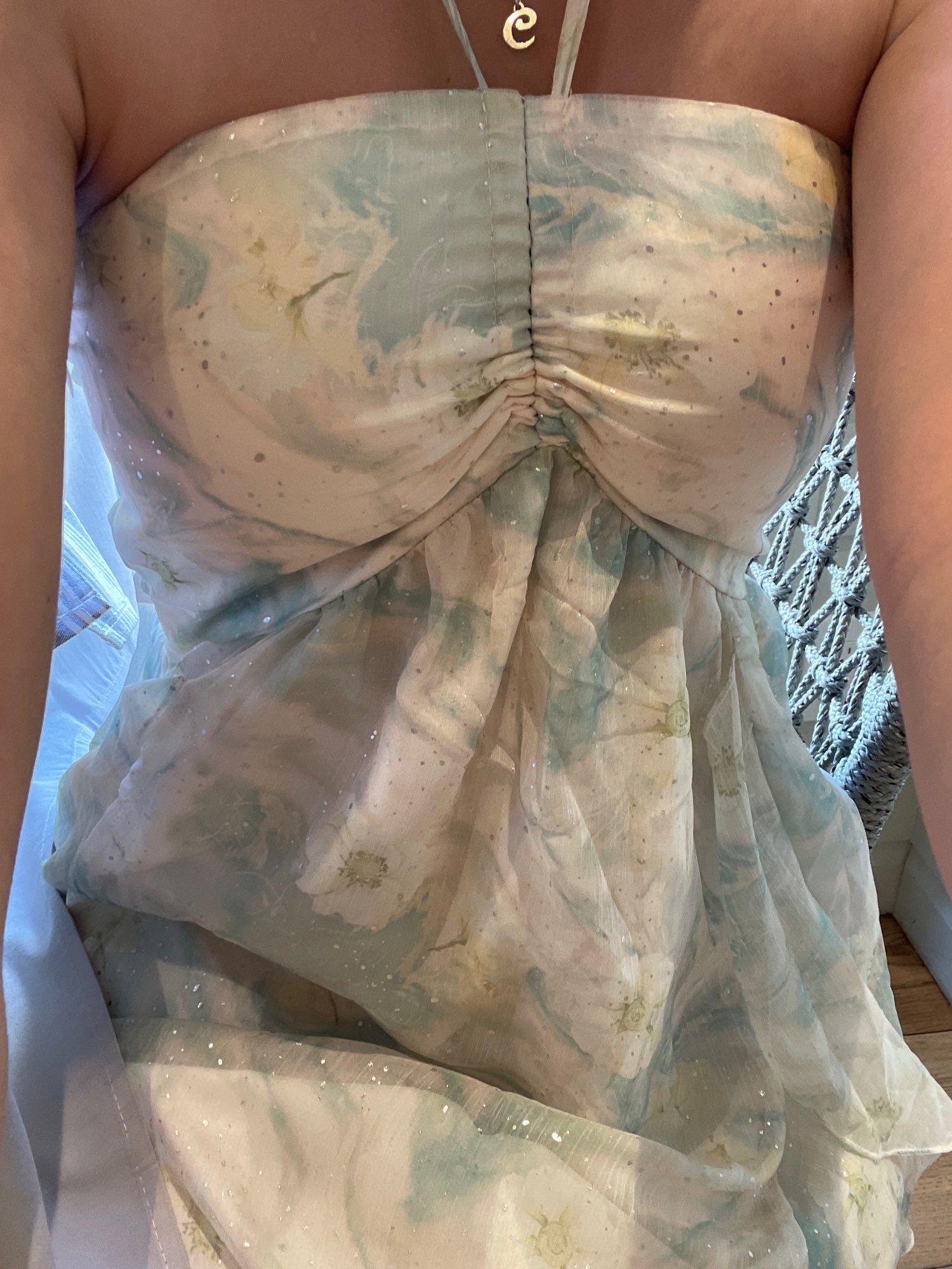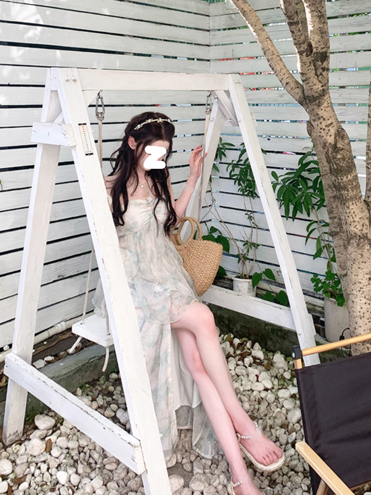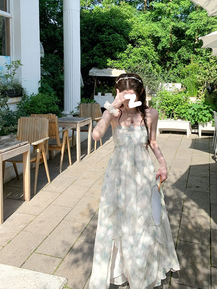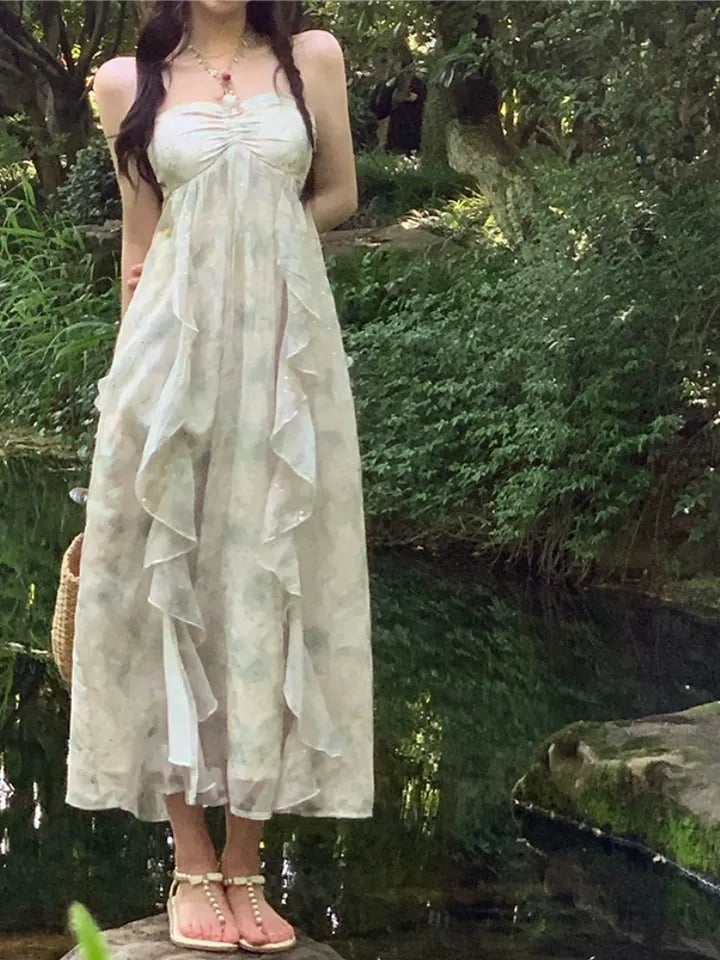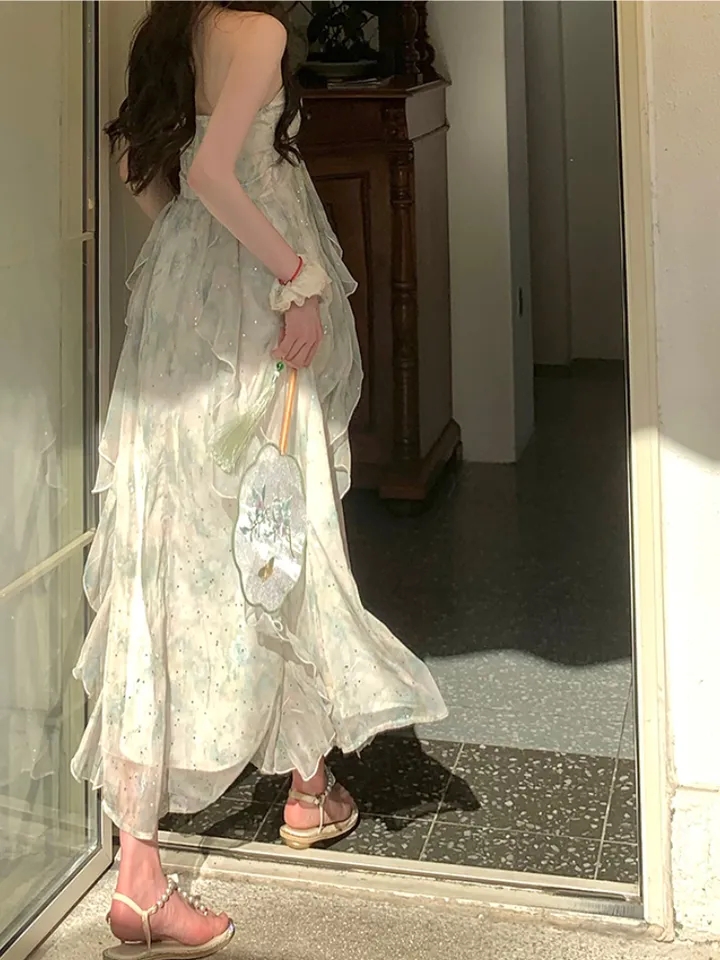 Pink Fairy Mesh Puffy Square Neck Long Dress