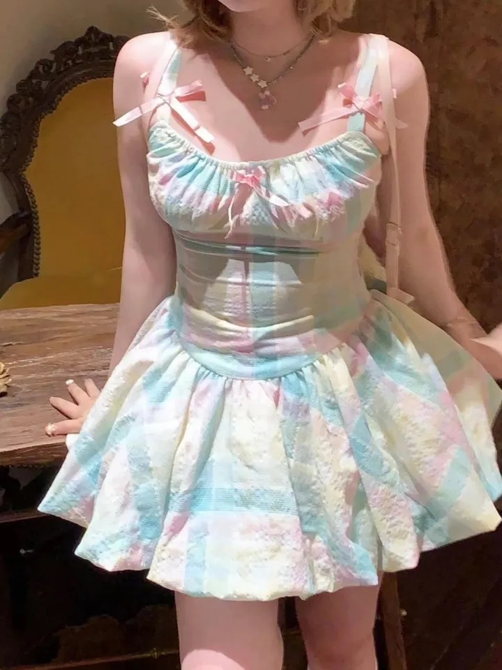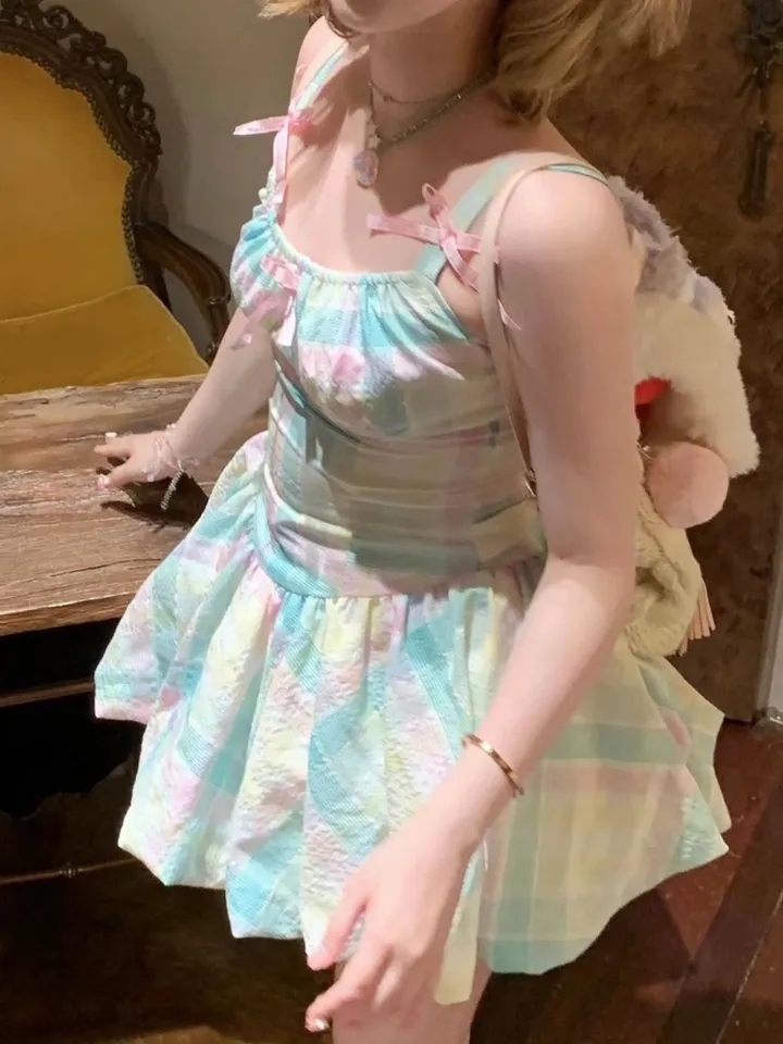 2PCS Blue Lace Ruffle Bow Cardigan + Mini Dress