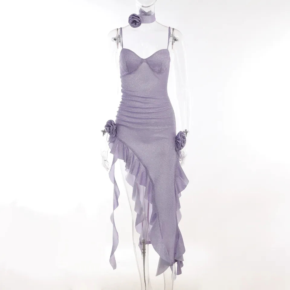 Pink Floral Patchwork Spaghetti Strap Maxi Dress