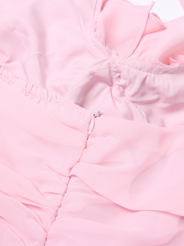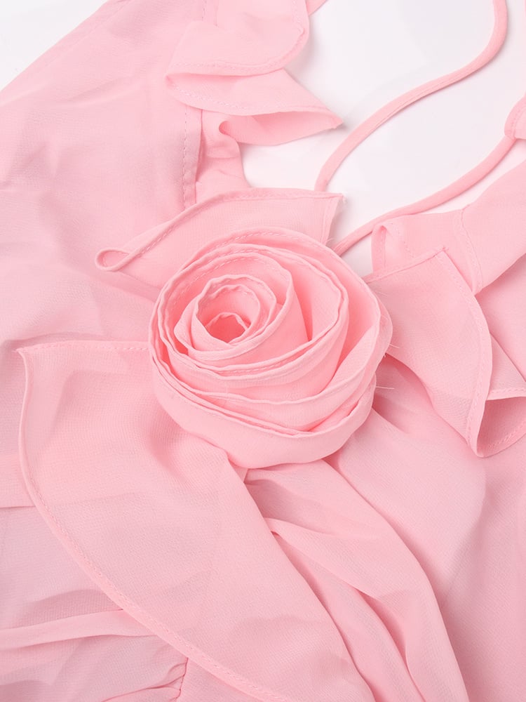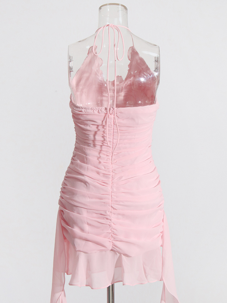 Pink Flower Halter Fold Mini Dress