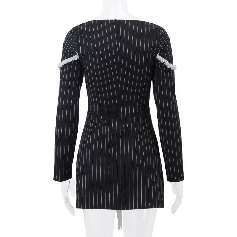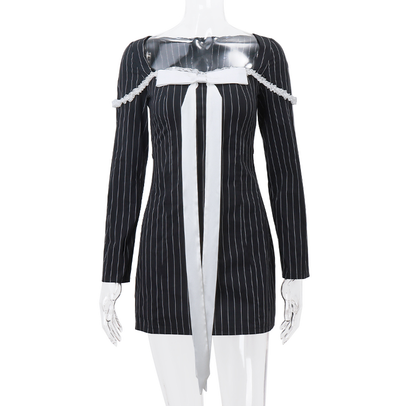 Preppy Bow Sqaure Neck Long Sleeve Dress
