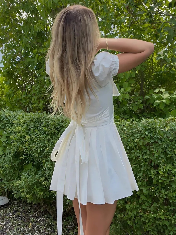 White French Elegant Bow Mini Dress