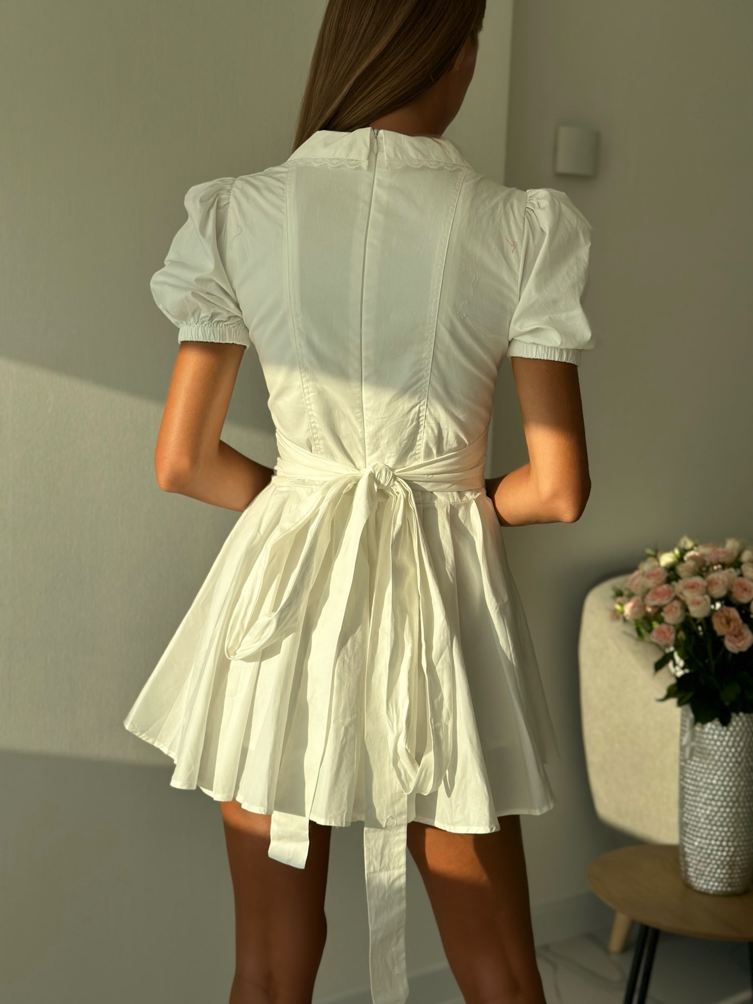 White Puff Sleeve Mini Dress