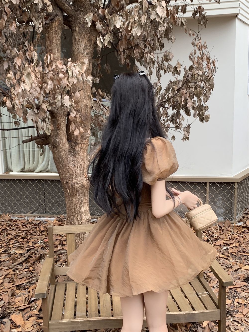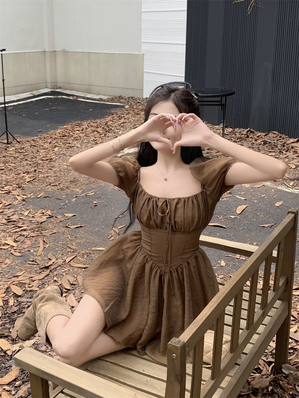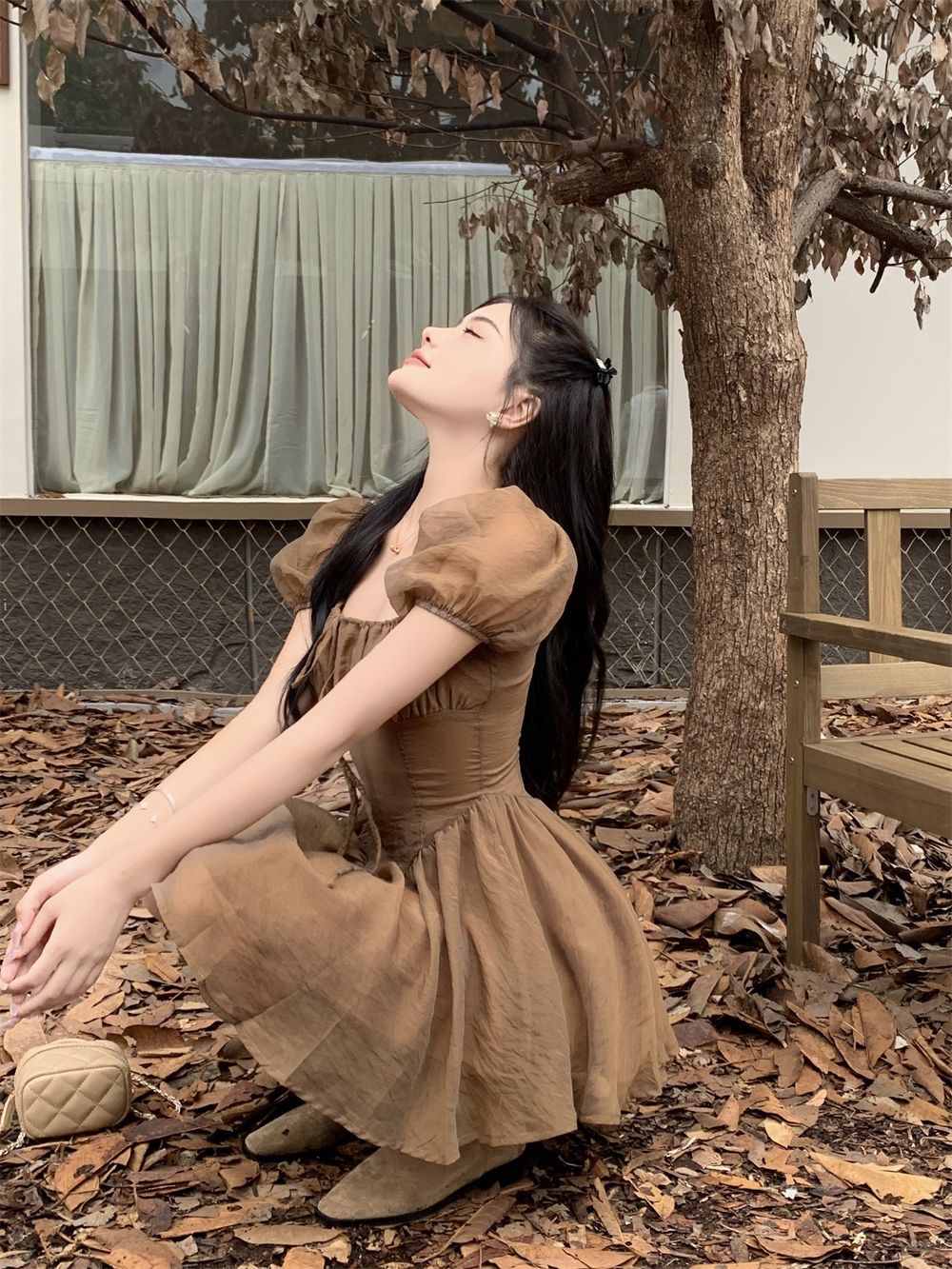 Cute Sexy Blue Cloud Sky Princess Square Neck Puff Sleeve Mini Party Dress Summer Aesthetic E-Girl Kawaii Korean Japanese Harajuku