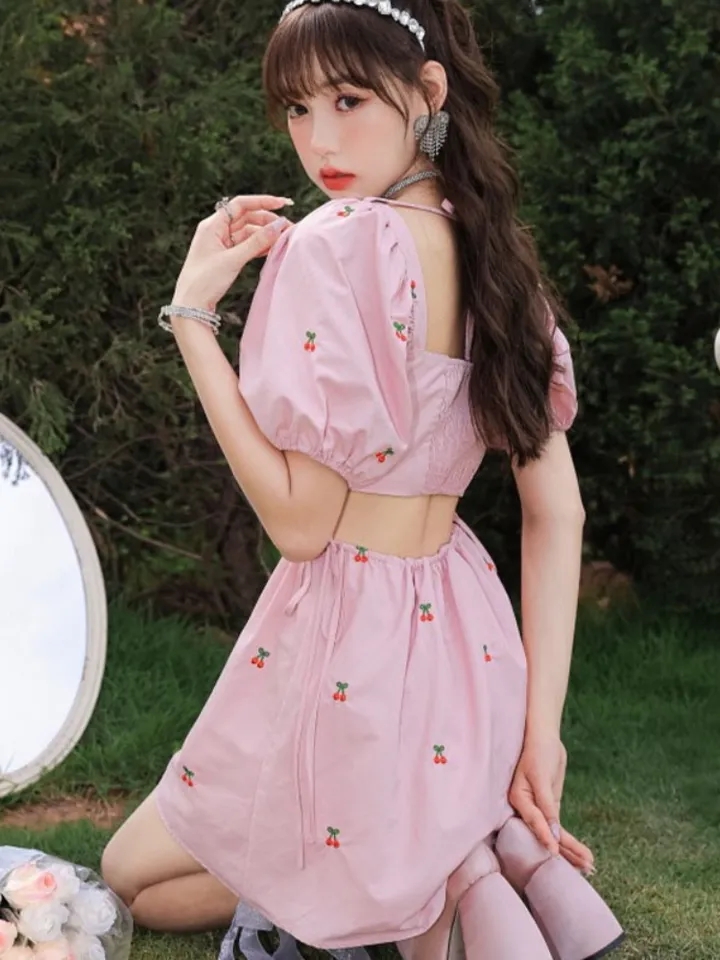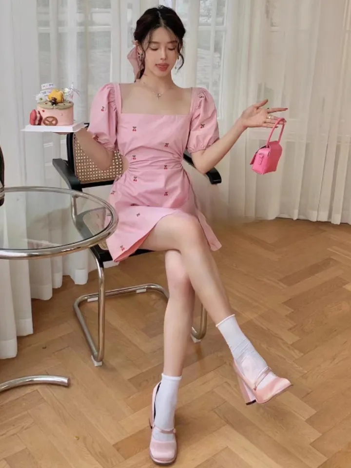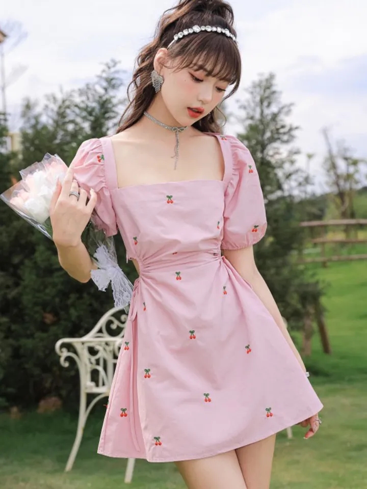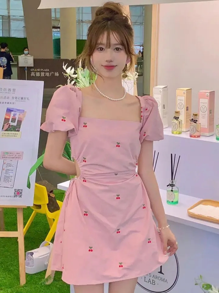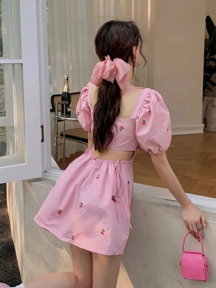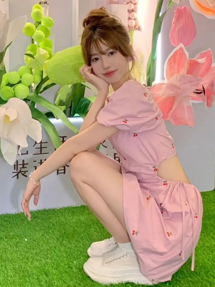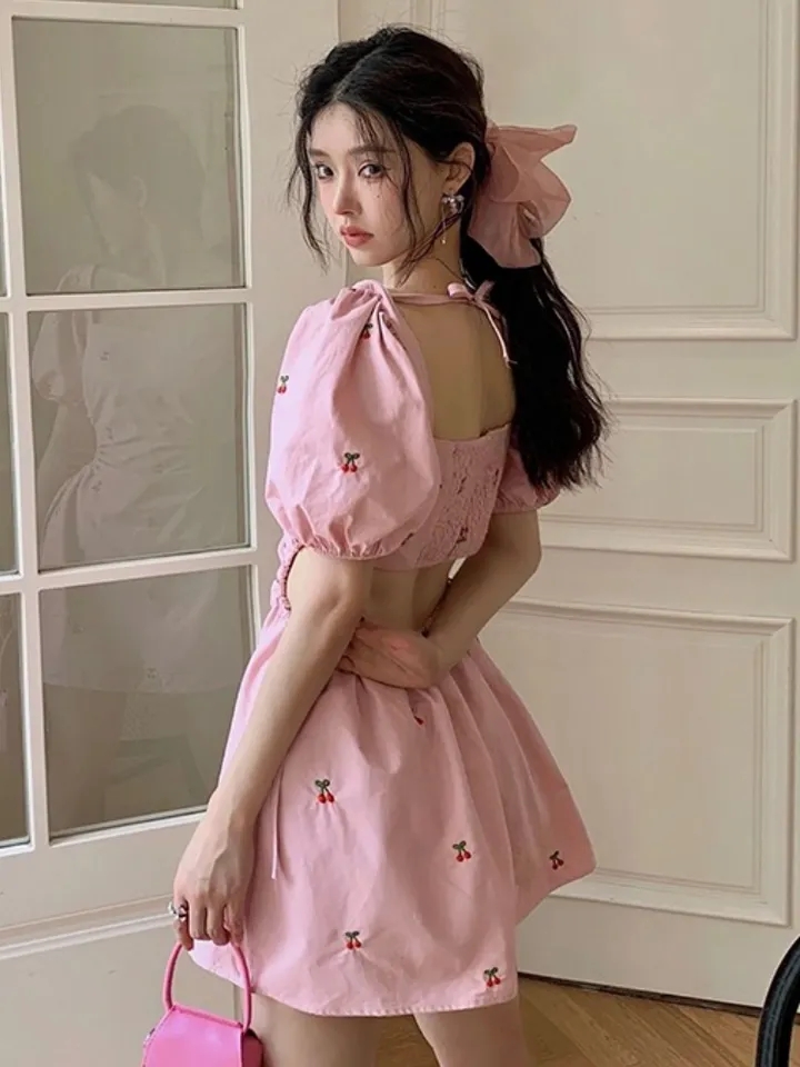 White Floral Puff Short Sleeve Lace Patchwork Mini Dress Summer Aesthetic Casual E-Girl Kawaii Korean Japanese Harajuku