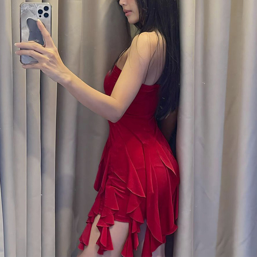 Cute Diamond Ruched Bandage Lace Up Hollow Out Long Sleeve Bodycon Dress Summer Party Club Aesthetic E-Girl Kawaii Korean Japanese Harajuku