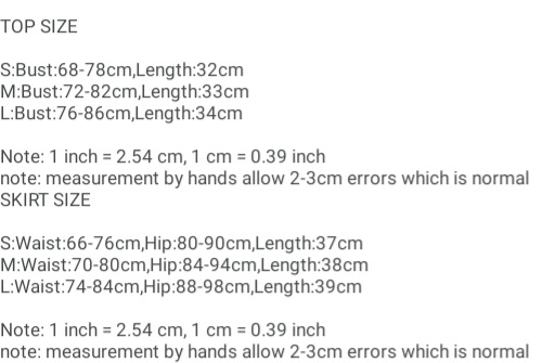 100% Brand New and High Quality . Material: Polyester, Cotton. Size: As shown on size chart. Includes: Top + Skirt.