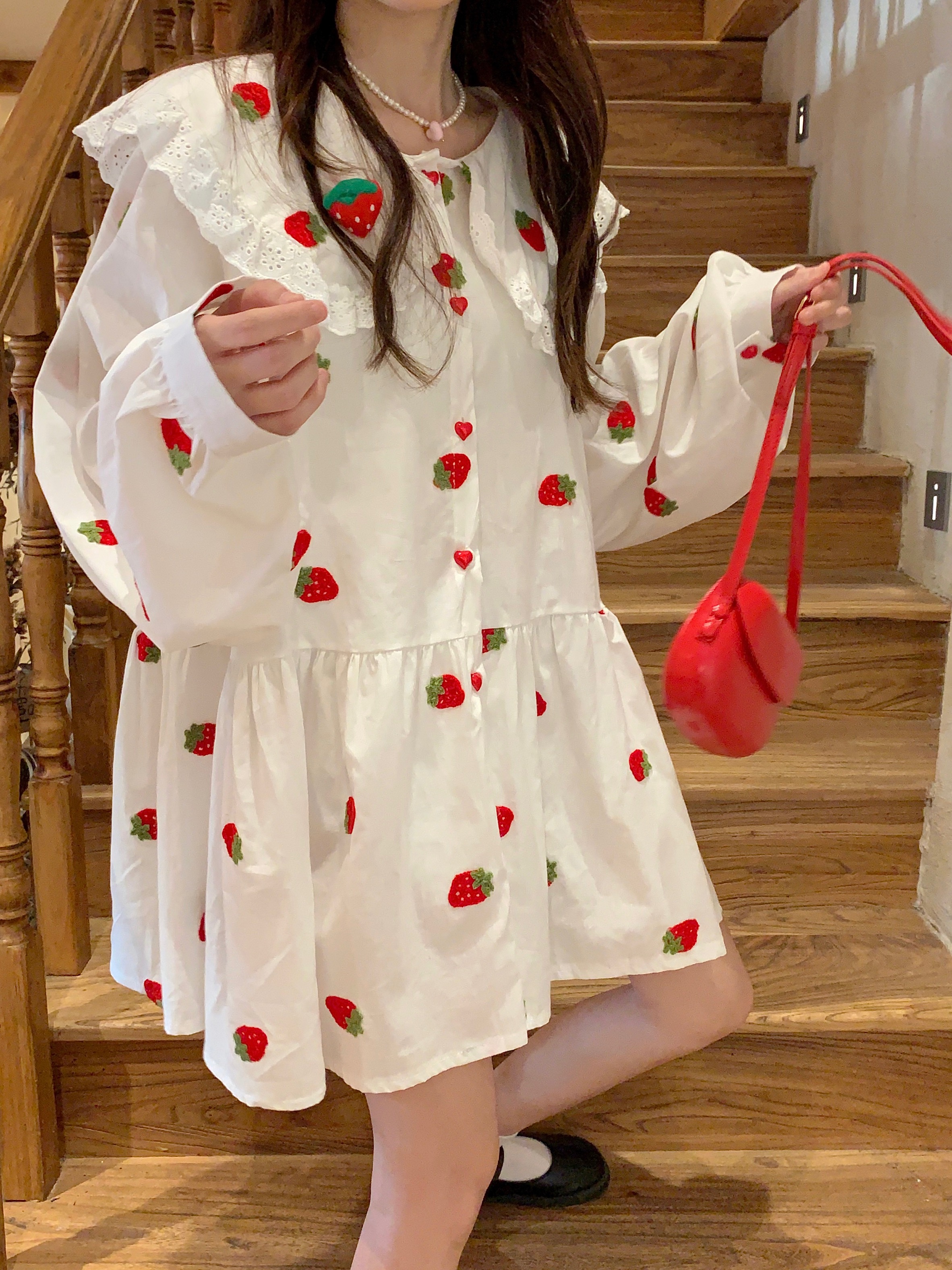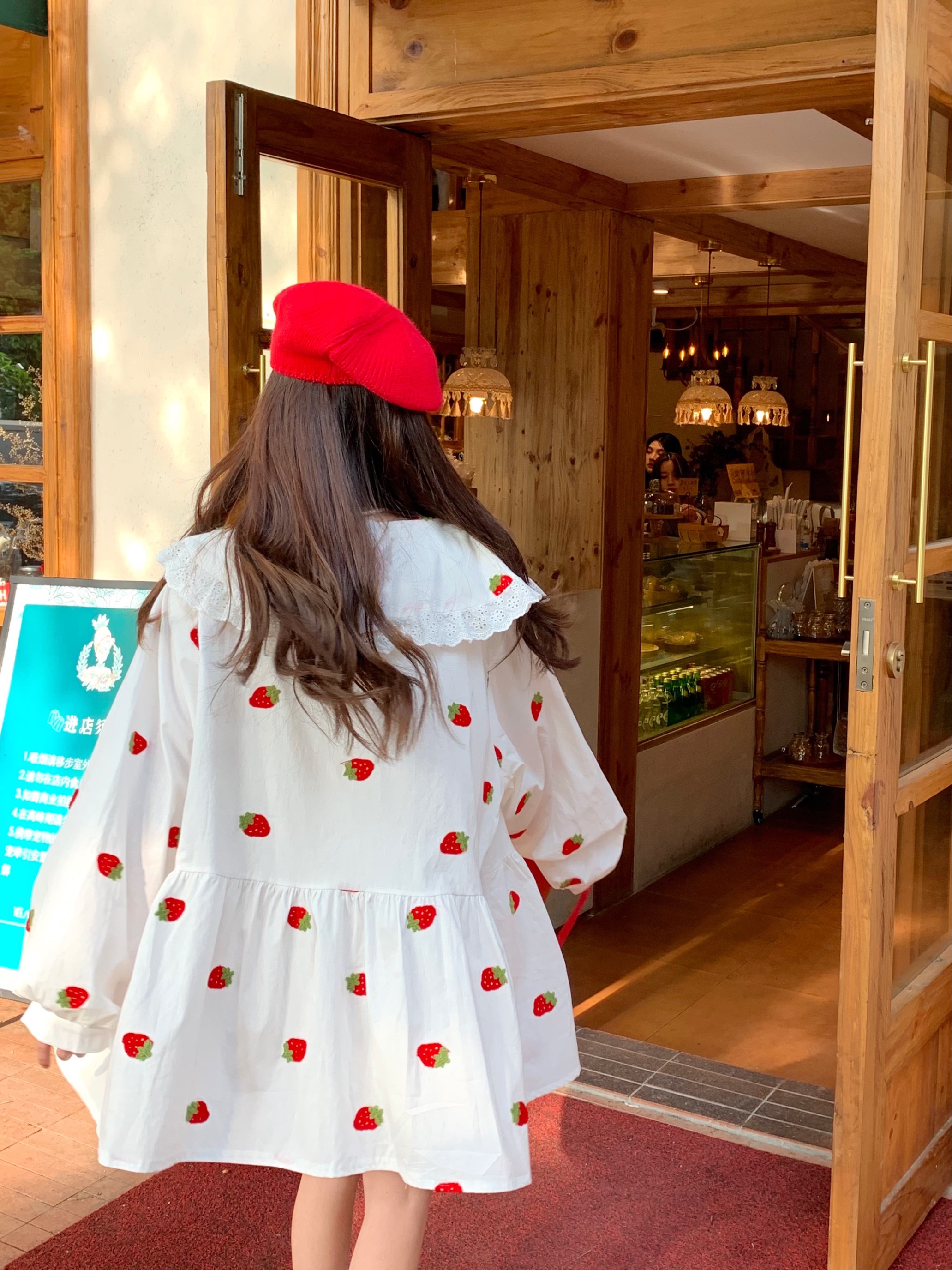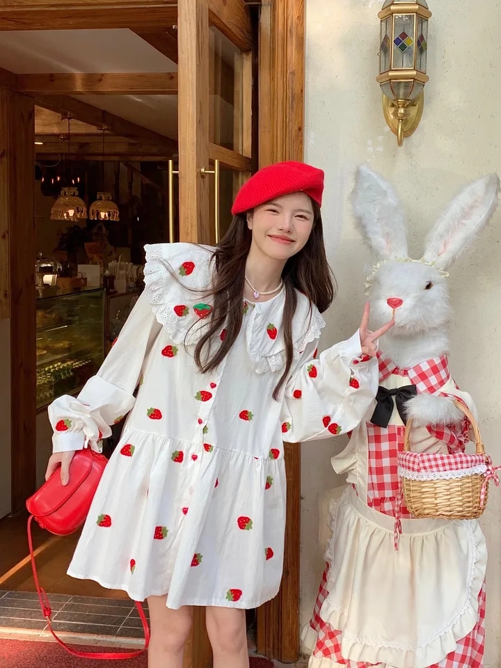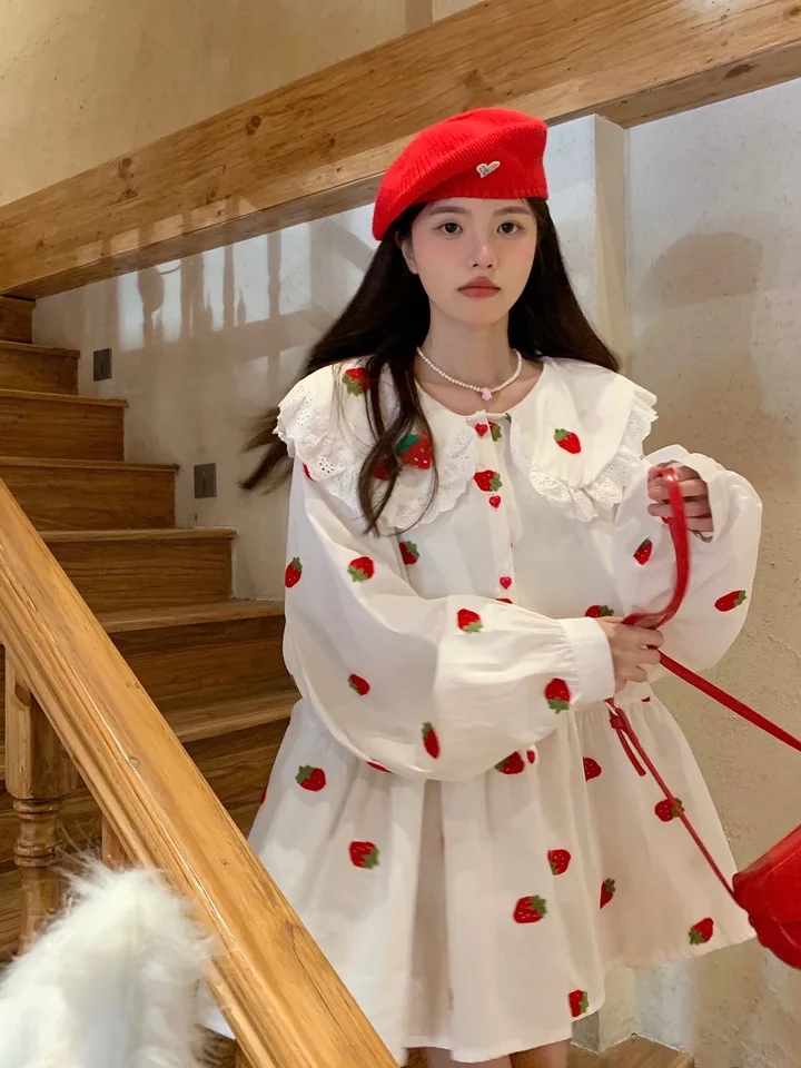 Strawberry Peterpan Collar Ruffle Mini Dress