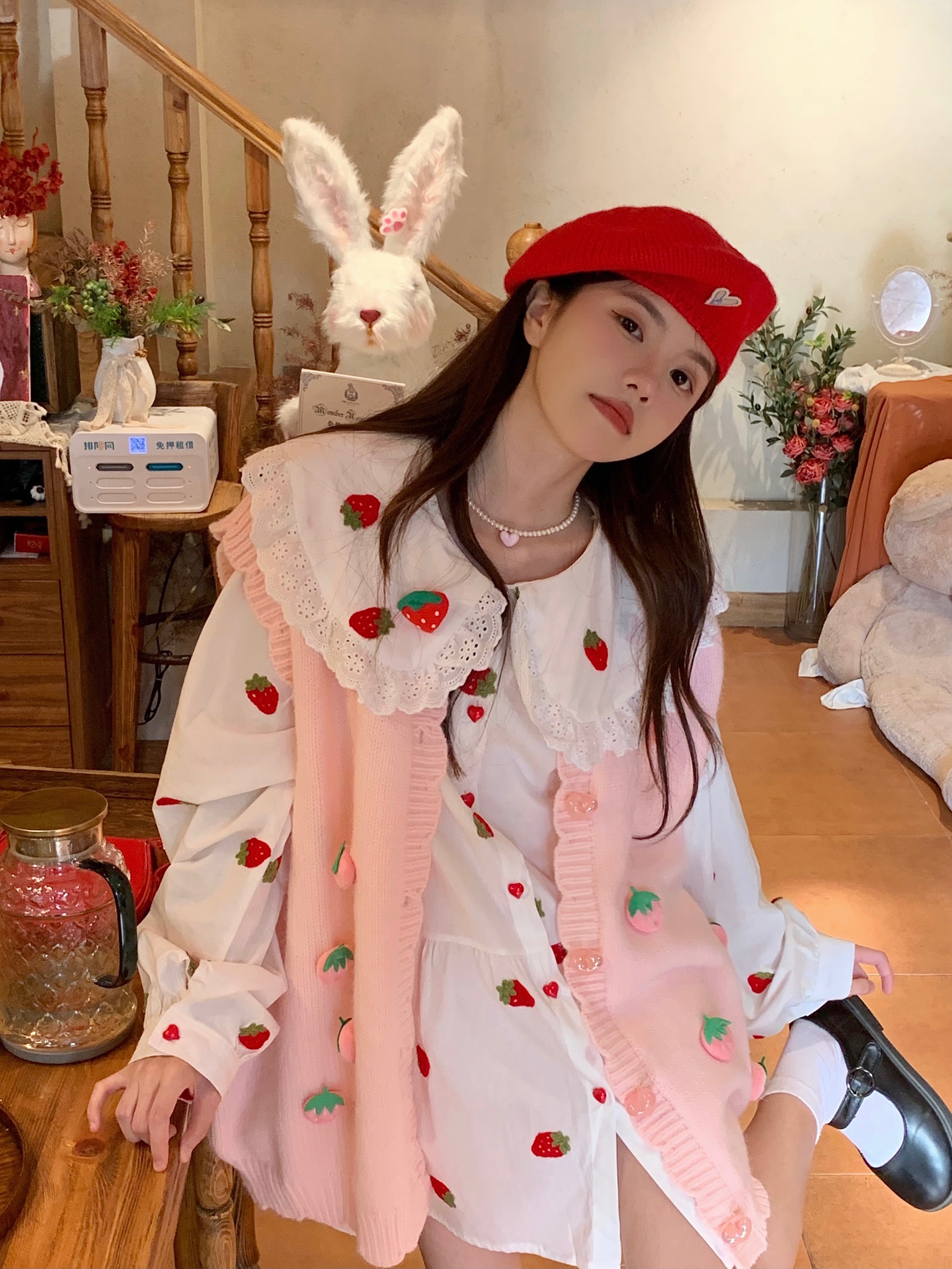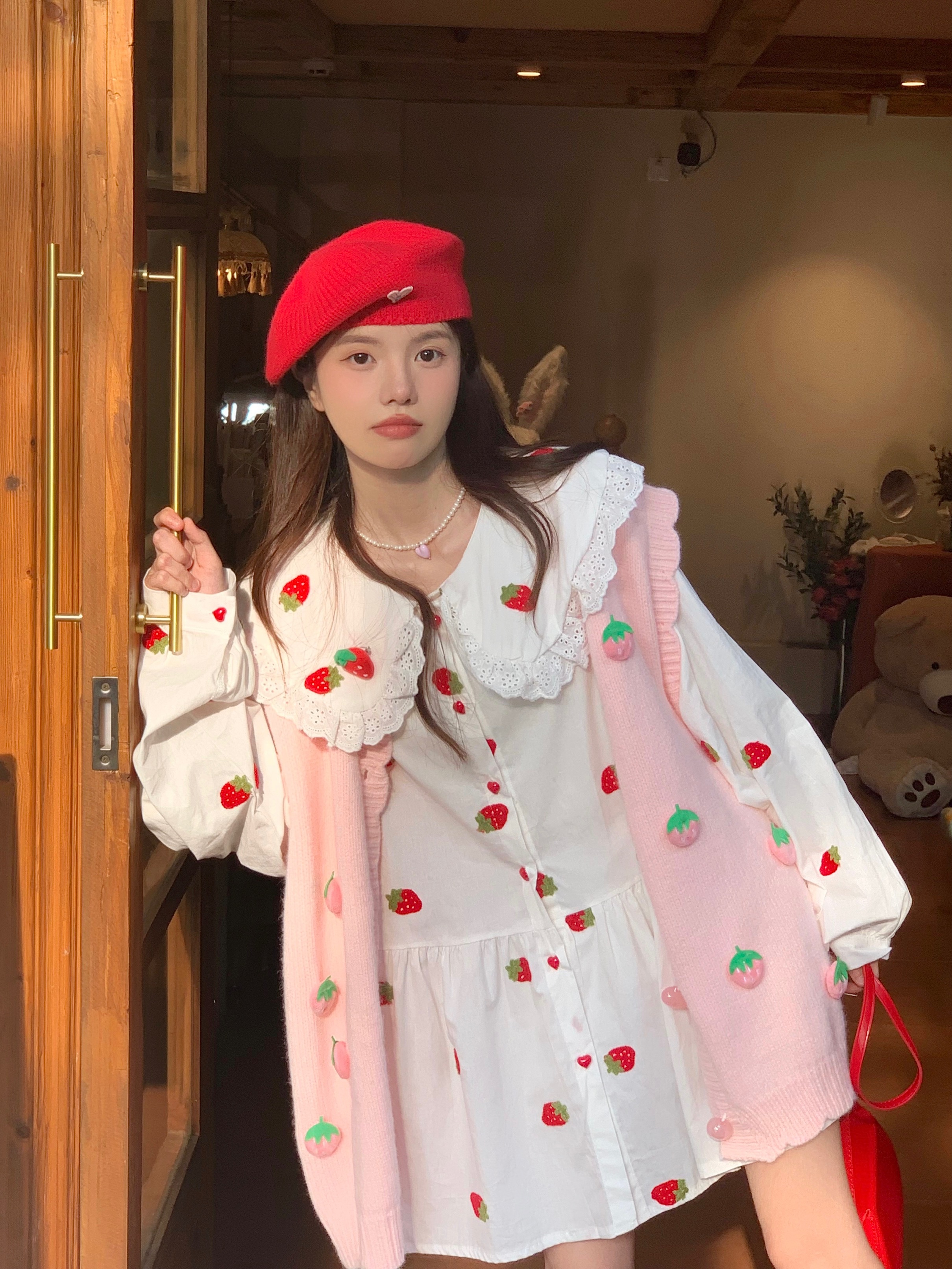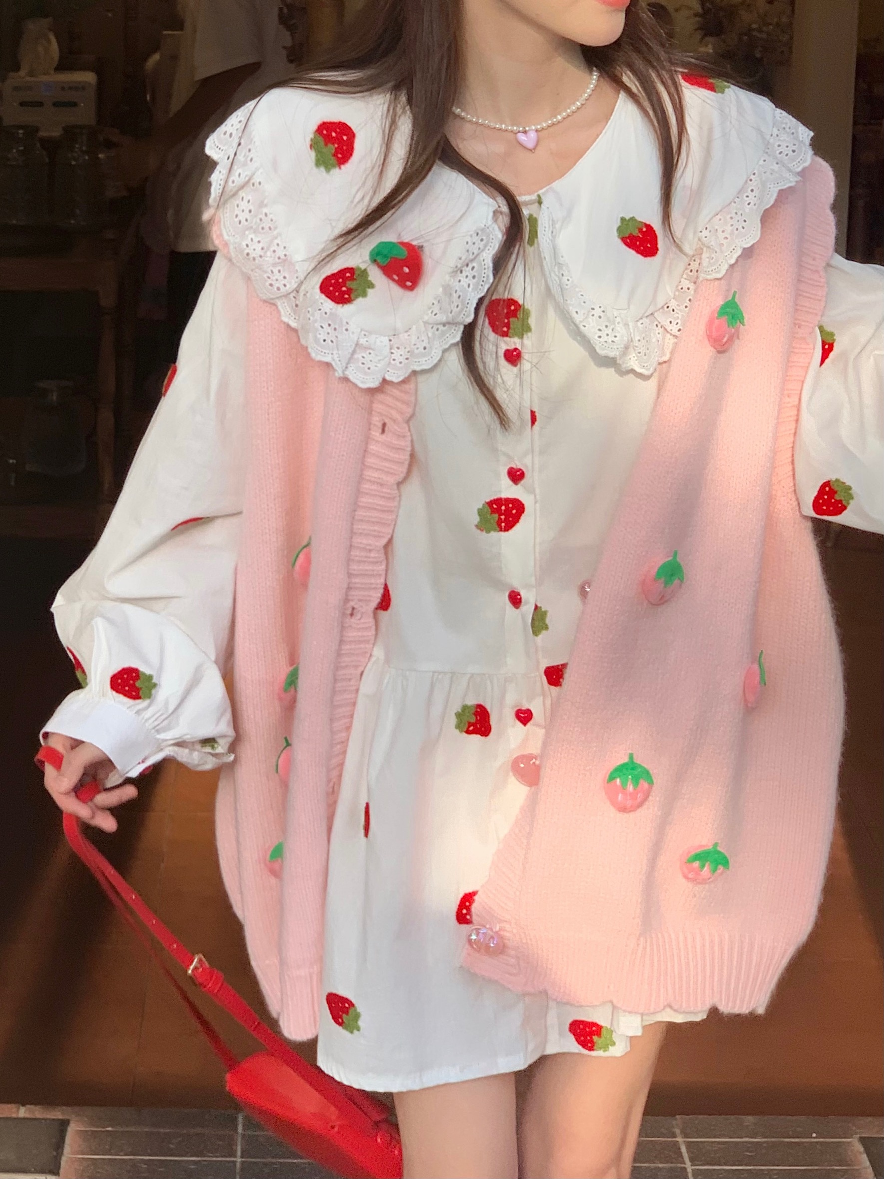 Strawberry Peterpan Collar Ruffle Mini Dress
