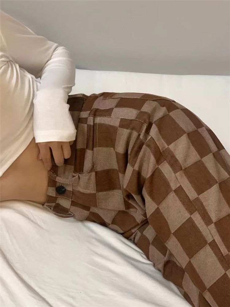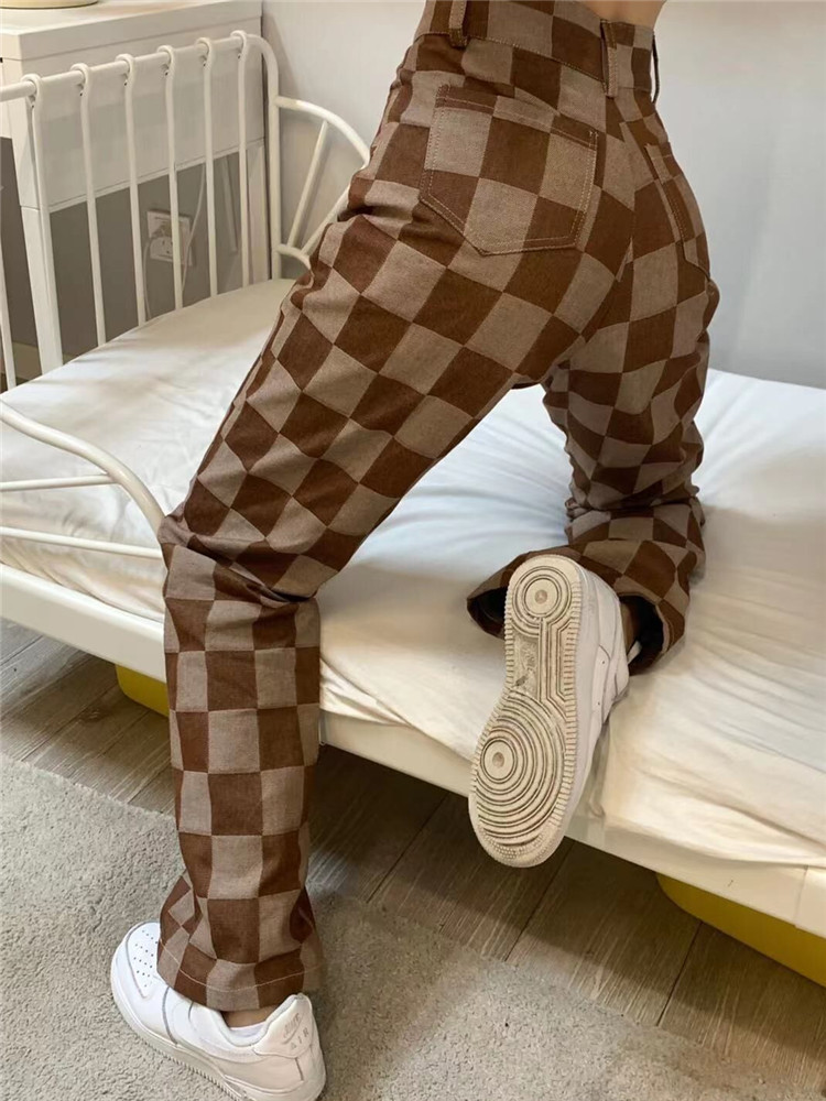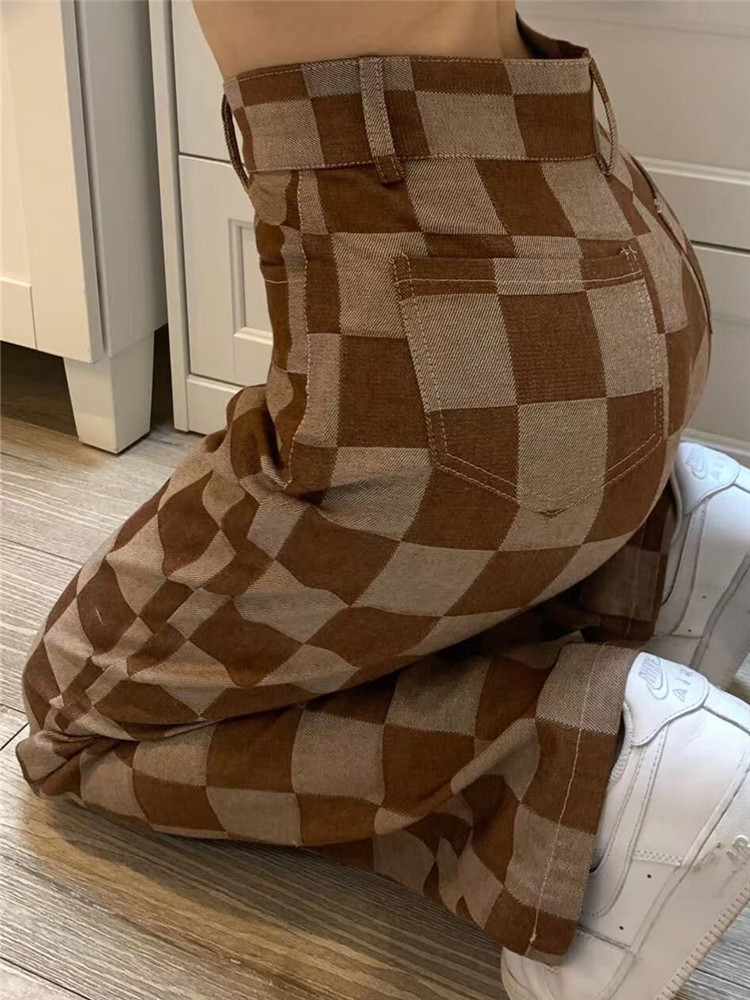 Cute Contrast Cargo Pant Loose Waist Plaid Checkered Trouser Jogger E-Girl Kawaii Korean Japanese Harajuku Chinese Retro Streetwear Aesthetic