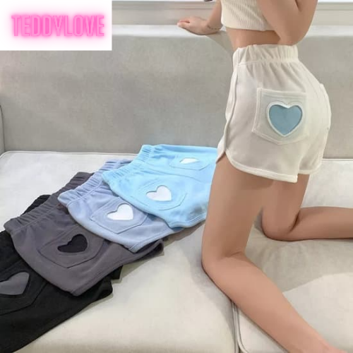 Cute Sweet Love Heart Cut Out High Waisted Shorts loose Gym Bottoms Aesthetic Casual Summer E-Girl Kawaii Korean Japanese Harajuku