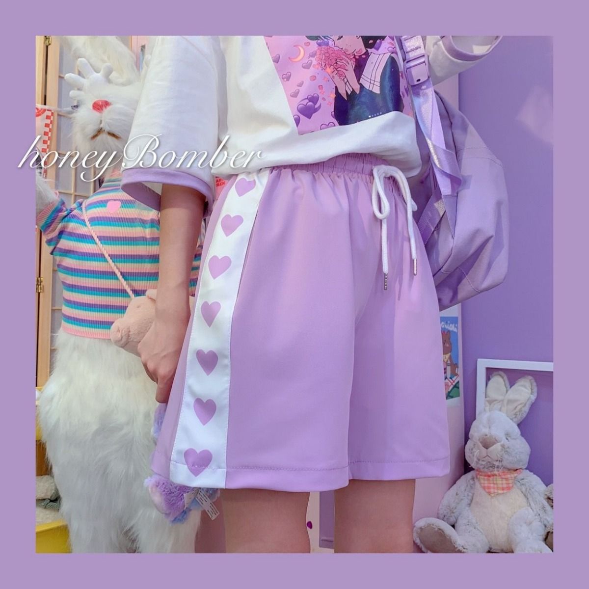 Purple Heart Drawstring Shorts