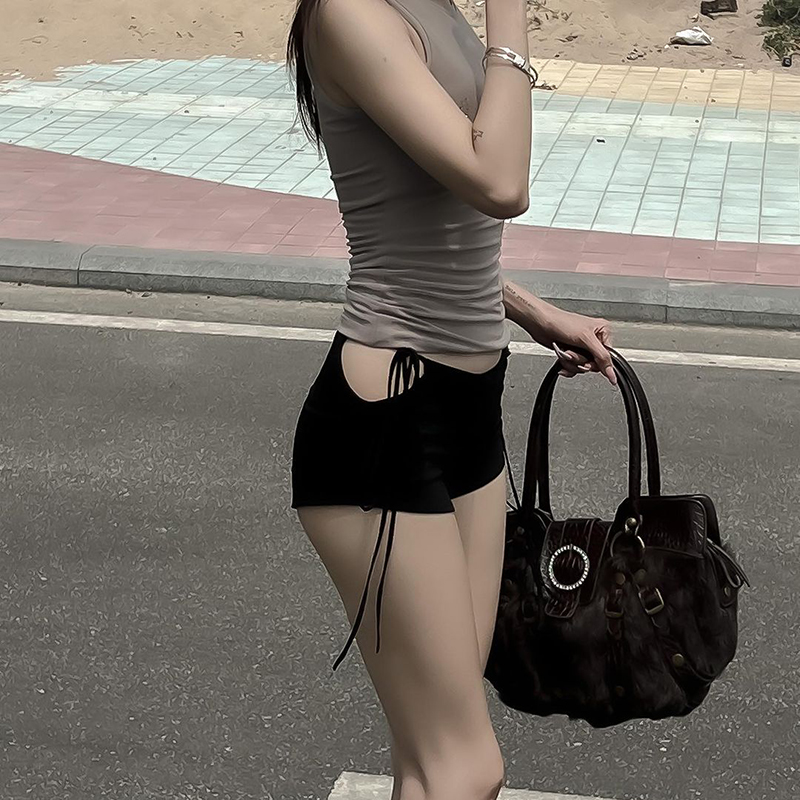 Black Low Rise Lace Up Shorts