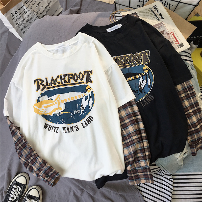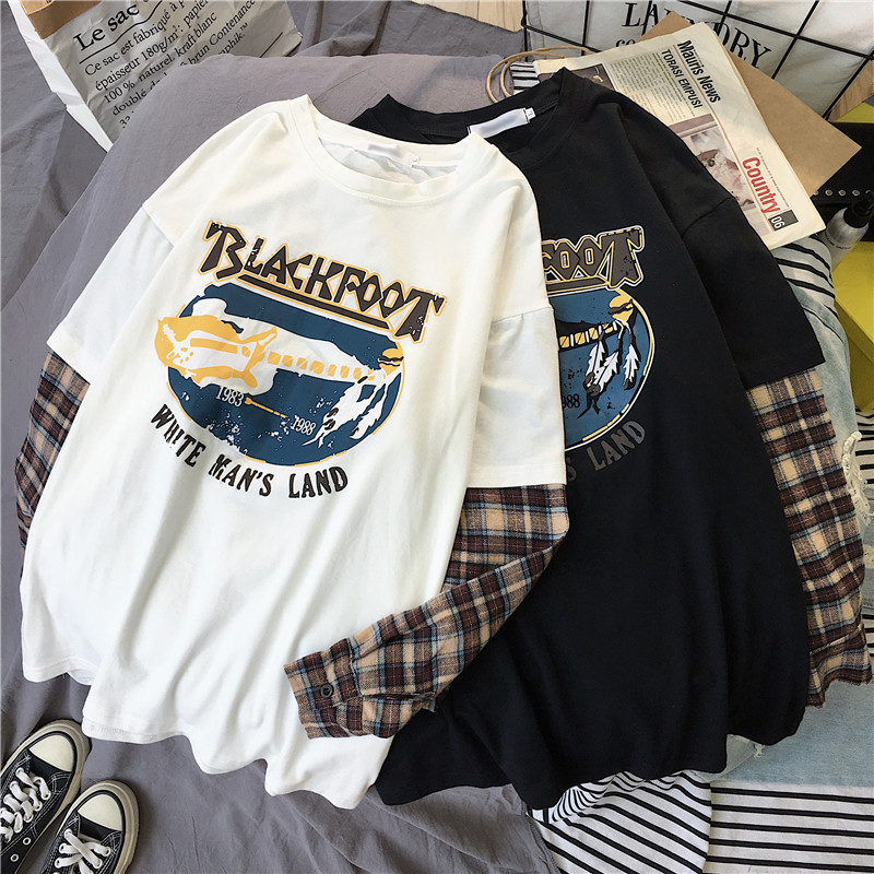 Black White Plaid Patchwork Print Loose Casual Sweatshirt Sweater Long Sleeve Shirt Pullover Jumper E-Girl Kawaii Korean Japanese Harajuku Streetwear