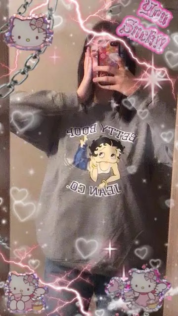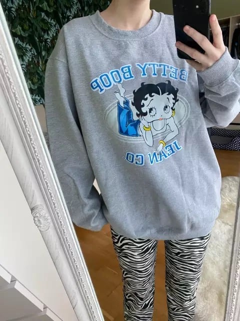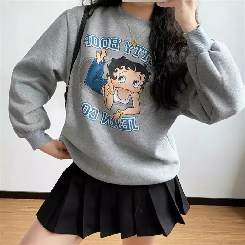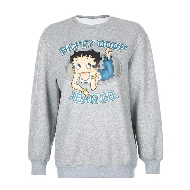 Cute 80s 90s Vintage Cartoon Girl Print Long Sleeve Shirt Hoodie Pullover Sweatshirt Sweater Casual E-Girl Kawaii Korean Japanese Harajuku Streetwear