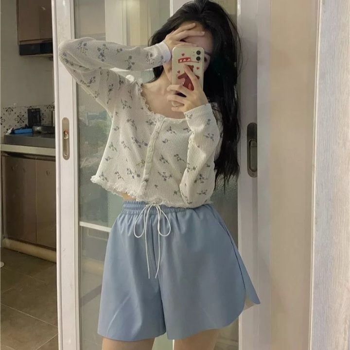 Sweet Floral Lace Chic Cardigan Patchwork Long Sleeve Shirt Crop Top Casual Summer E-Girl Kawaii Korean Japanese Harajuku
