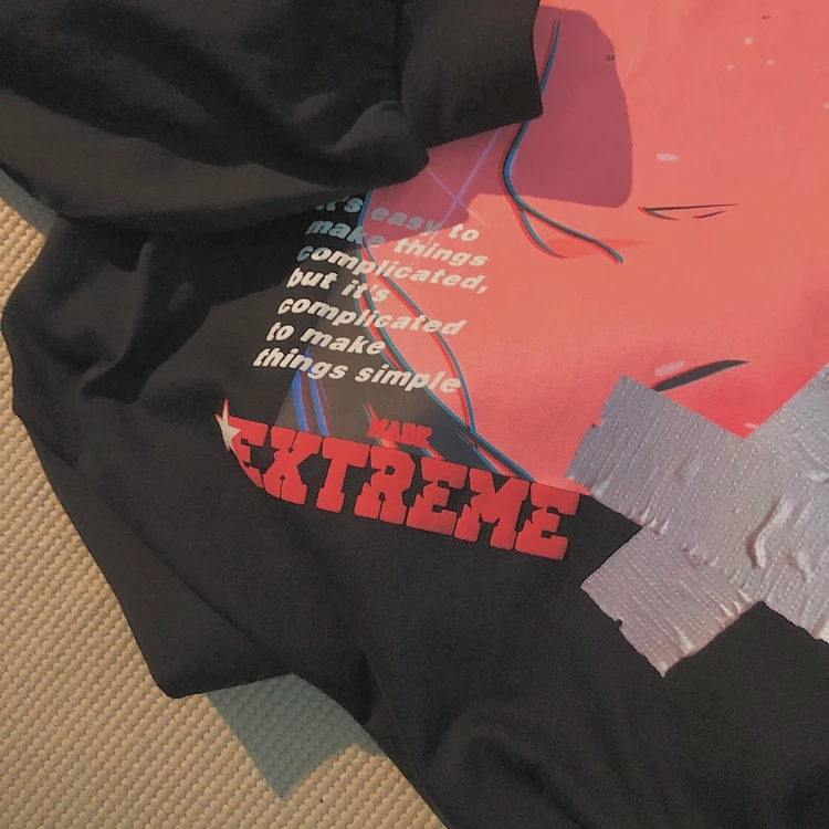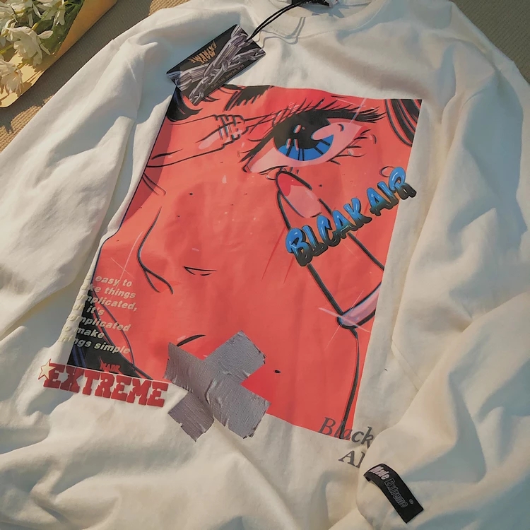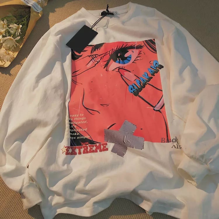 Cute Black Anime Girl Cartoon Print Hoodie Sweatshirt Long Sleeve Shirt Aesthetic Casual Summer E-Girl Kawaii Korean Japanese Harajuku