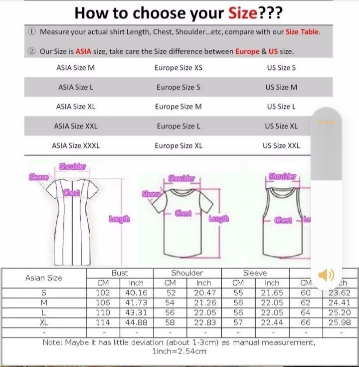 As shown on size chart