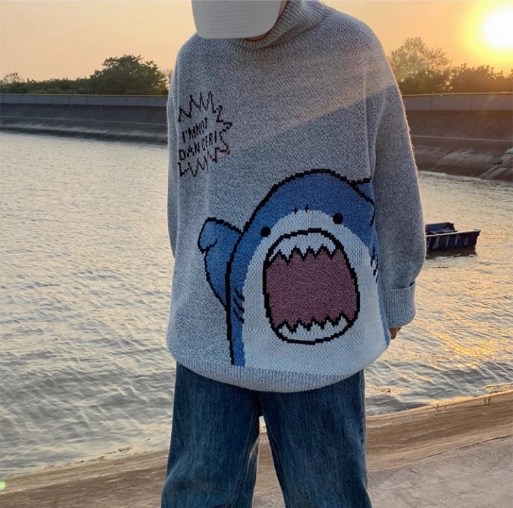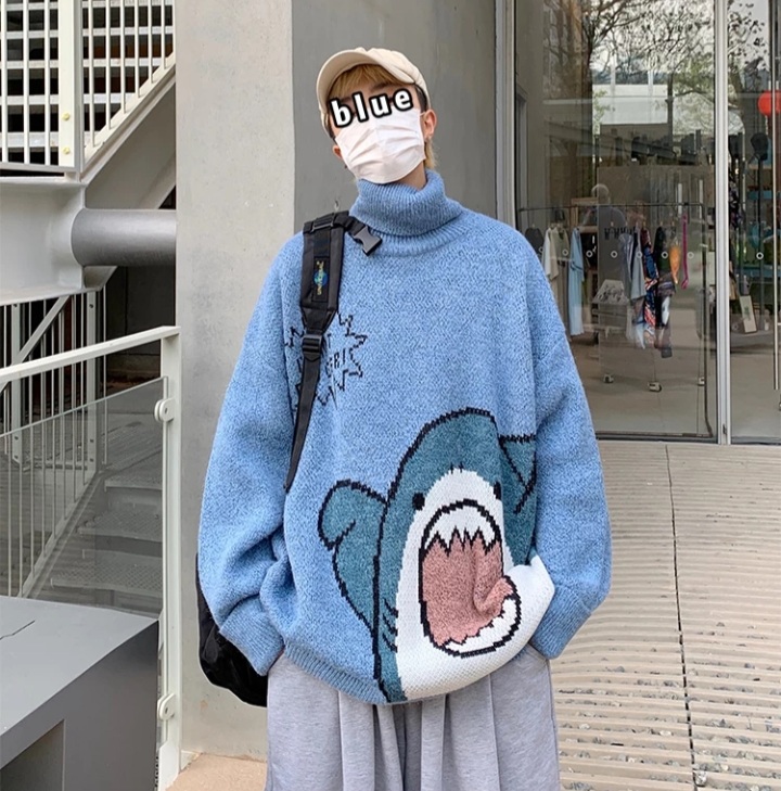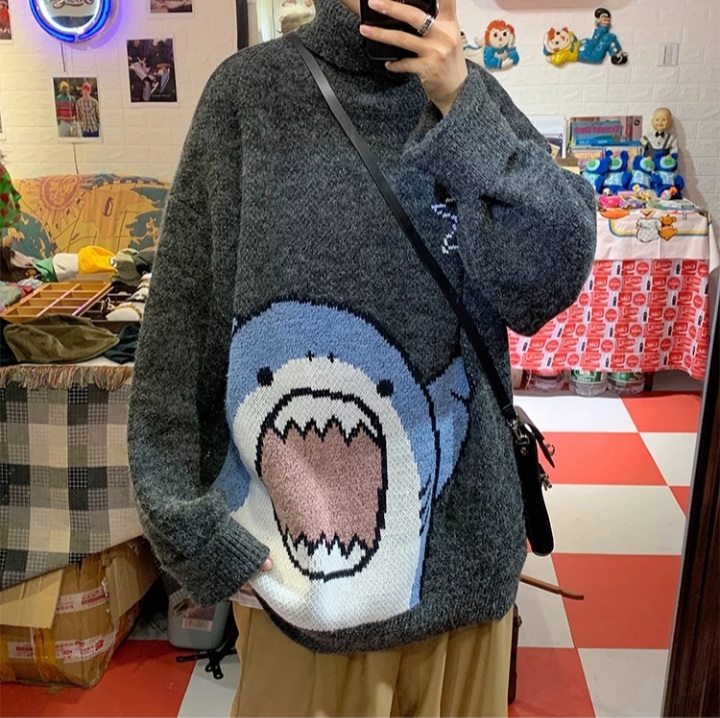 Cute Funny Shark Cartoon Knit Turtleneck Oversized Sweater Pullover Winter Aesthetic Casual Kawaii Korean Japanese Harajuku