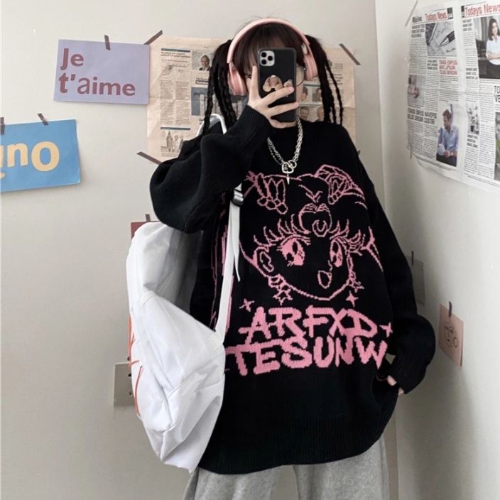 Cute Japanese Anime Girl Knit Long Sleeve Pullover