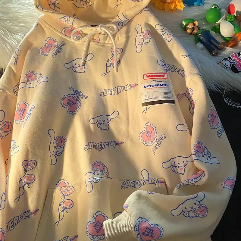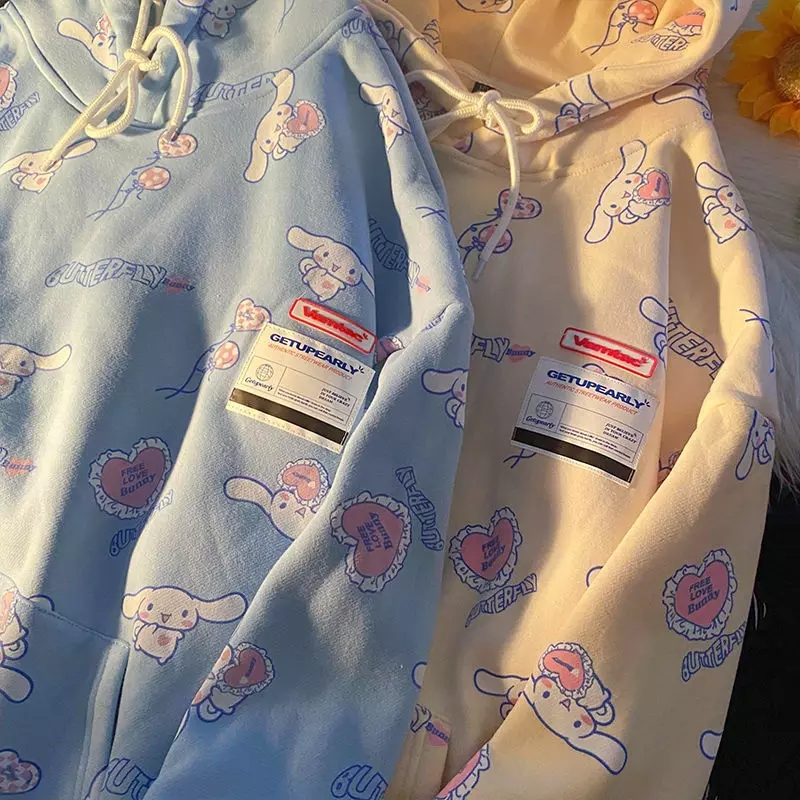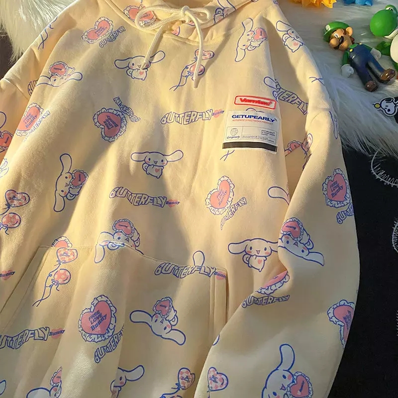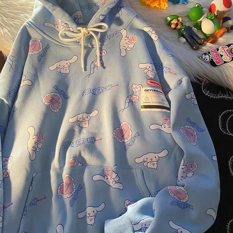Cute Cinnamon Roll Anime Cartoon Print Long Sleeve Hoodie Sweatshirt Aesthetic Casual E-Girl Kawaii Korean Japanese Harajuku