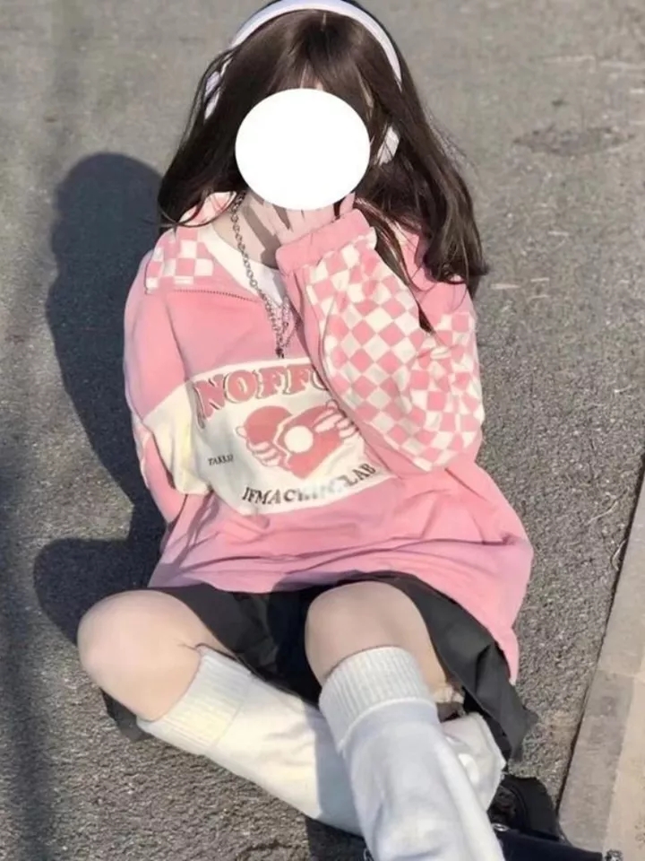 Anime Girl Cartoon Casual Stripe Loose Oversized Hoodie Sweater Sweatshirt Long Sleeve Pullover E-Girl Kawaii Korean Japanese Harajuku Streetwear