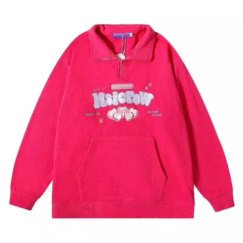 Love Heart Letter Embroidery Loose Long Sleeve Pullover