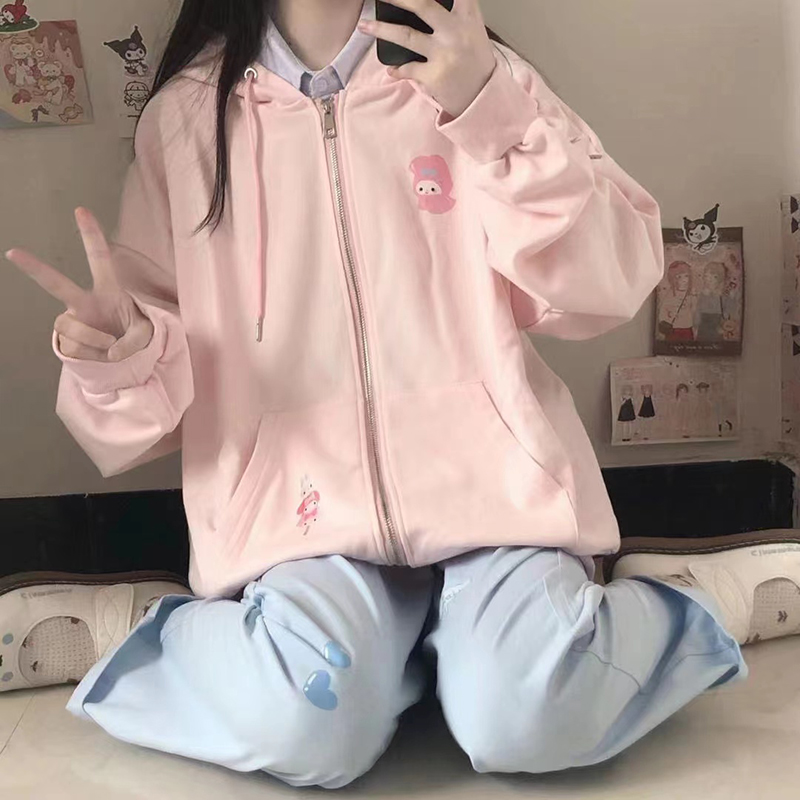 2PCS Rabbit Print Tracksuit Hoodie + Mini Skirt Set