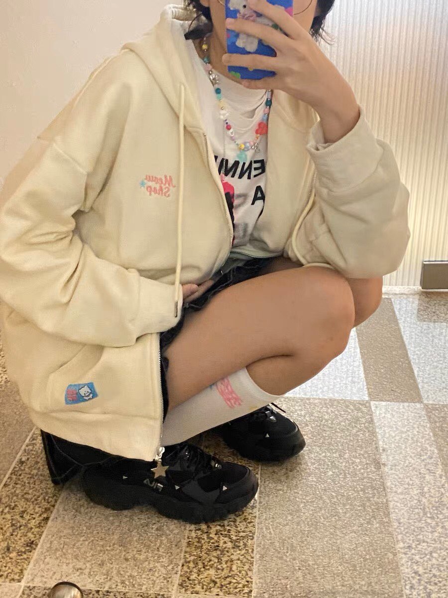 Puppy Embroidery Cartoon Zip Up Hoodie