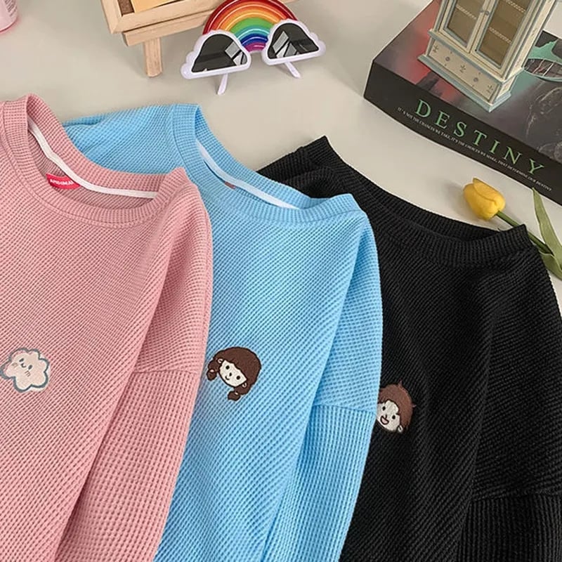 Cute Japanese Horror Punk Goth Cartoon Print Casual Sweatshirt Hoodie Pullover E-Girl Kawaii Korean Japanese Harajuku Retro Streetwear Aesthetic
