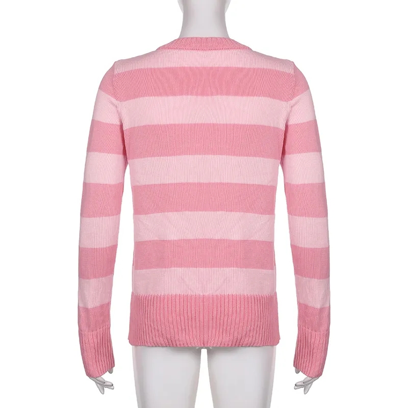 Cute Pink Heart Shape Hollow Out Long Sleeve O-neck Sweater Knit Pullover Aesthetic Casual E-Girl Kawaii Korean Japanese Harajuku